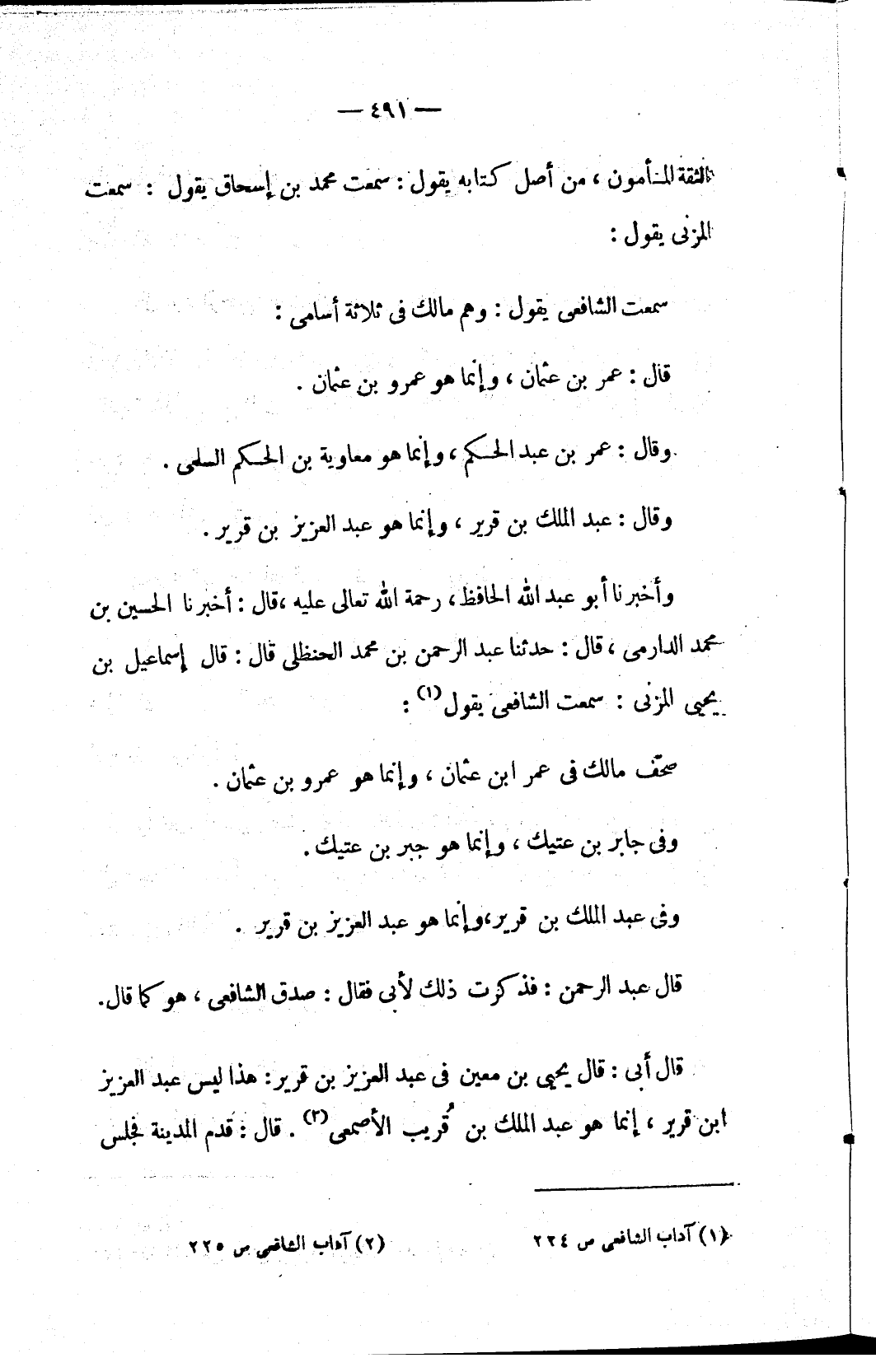(٢) آداب الشافعي ص ٢٢٥
