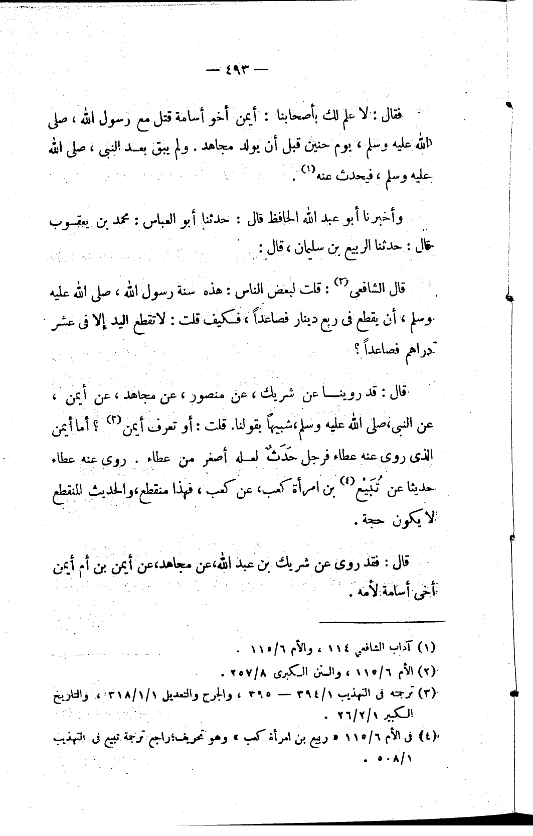 فقلت: لا علم لك بأصحابنا: أيمن أخو أسامة قتل مع رسول الله، صلى الله عليه وسلم، يوم حنين قبل أن يولد مجاهد. ولم يبق بعد النبي، صلى الله عليه وسلم، فيحدث عنه (١).