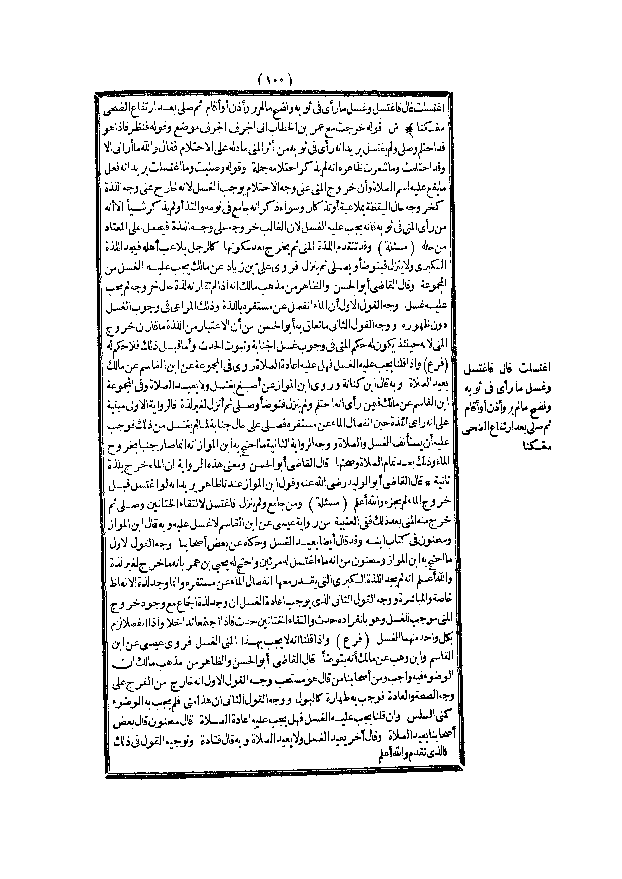 (فَرْعٌ) وَإِذَا قُلْنَا إنَّهُ لَا يَجِبُ بِهَذَا الْمَنِيِّ الْغُسْلُ فَرَوَى عِيسَى عَنْ ابْنِ الْقَاسِمِ وَابْنِ وَهْبٍ عَنْ مَالِكٍ أَنَّهُ يَتَوَضَّأُ قَالَ الْقَاضِي أَبُو الْحَسَنِ وَالظَّاهِرُ مِنْ مَذْهَبِ مَالِكٍ أَنَّ الْوُضُوءَ فِيهِ وَاجِبٌ وَمِنْ أَصْحَابِنَا مَنْ قَالَ هُوَ مُسْتَحَبٌّ.