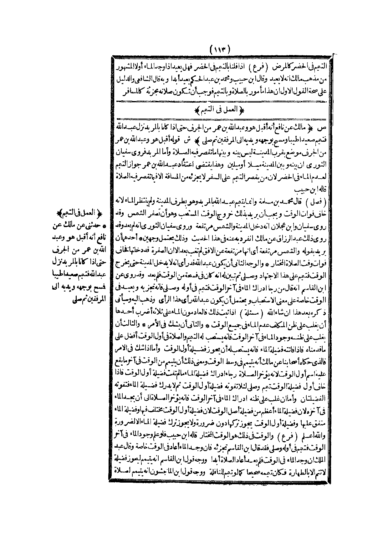 الْعَمَلُ فِي التَّيَمُّمِ (ص) : (مَالِكٌ عَنْ نَافِعٍ أَنَّهُ أَقْبَلَ هُوَ وَعَبْدُ اللَّهِ بْنُ عُمَرَ مِنْ الْجُرْفِ حَتَّى إذَا كَانَا بِالْمِرْبَدِ نَزَلَ عَبْدُ اللَّهِ فَتَيَمَّمَ صَعِيدًا طَيِّبًا وَمَسَحَ بِوَجْهِهِ وَيَدَيْهِ إلَى الْمِرْفَقَيْنِ ثُمَّ صَلَّى)