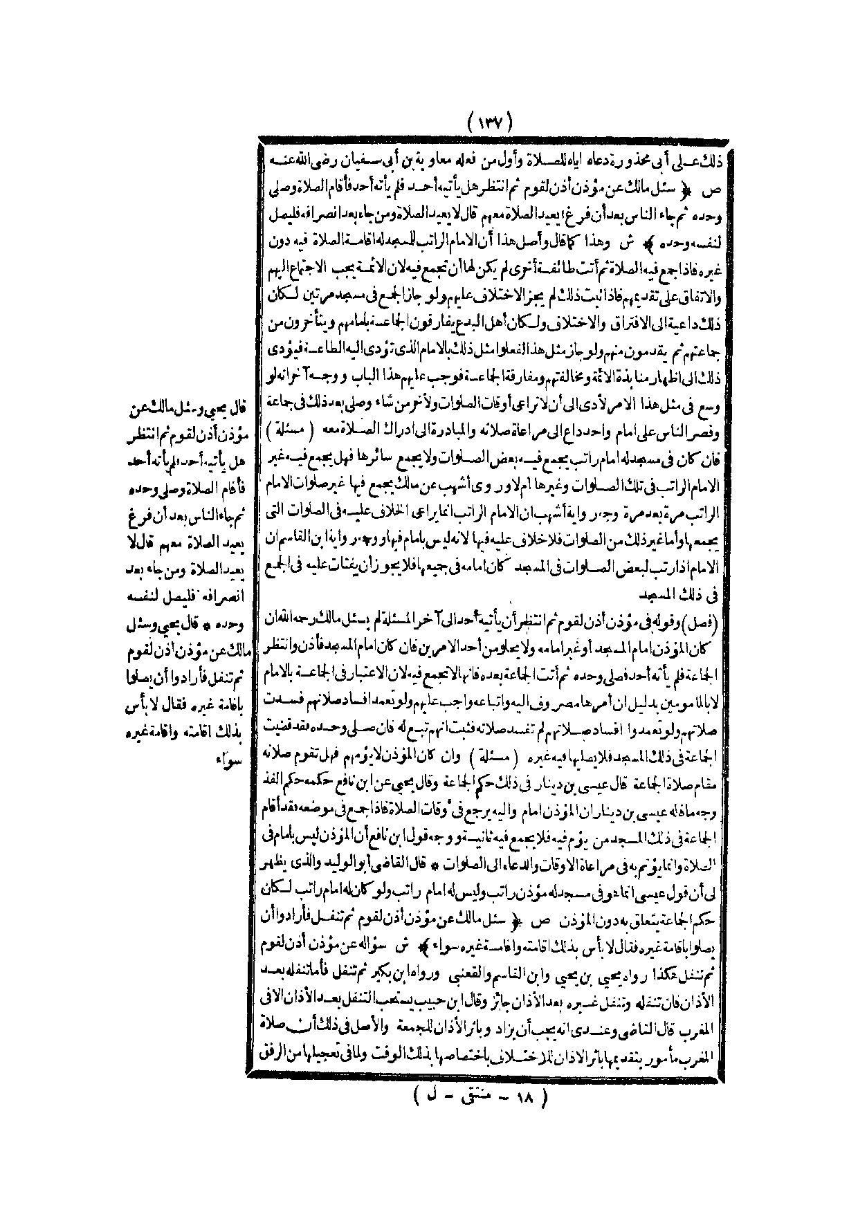 (ش) : سُؤَالُهُ عَنْ مُؤَذِّنٍ أَذَّنَ لِقَوْمٍ ثُمَّ تَنَفَّلَ هَكَذَا رَوَاهُ يَحْيَى بْنُ يَحْيَى وَابْنُ الْقَاسِمِ وَالْقَعْنَبِيُّ وَرَوَاهُ ابْنُ بُكَيْر ثُمَّ تَنَفَّلَ فَأَمَّا تَنَفُّلُهُ بَعْدَ الْأَذَانِ فَإِنَّ تَنَفُّلَهُ وَتَنَفُّلَ غَيْرِهِ بَعْدَ الْأَذَانِ جَائِزٌ.