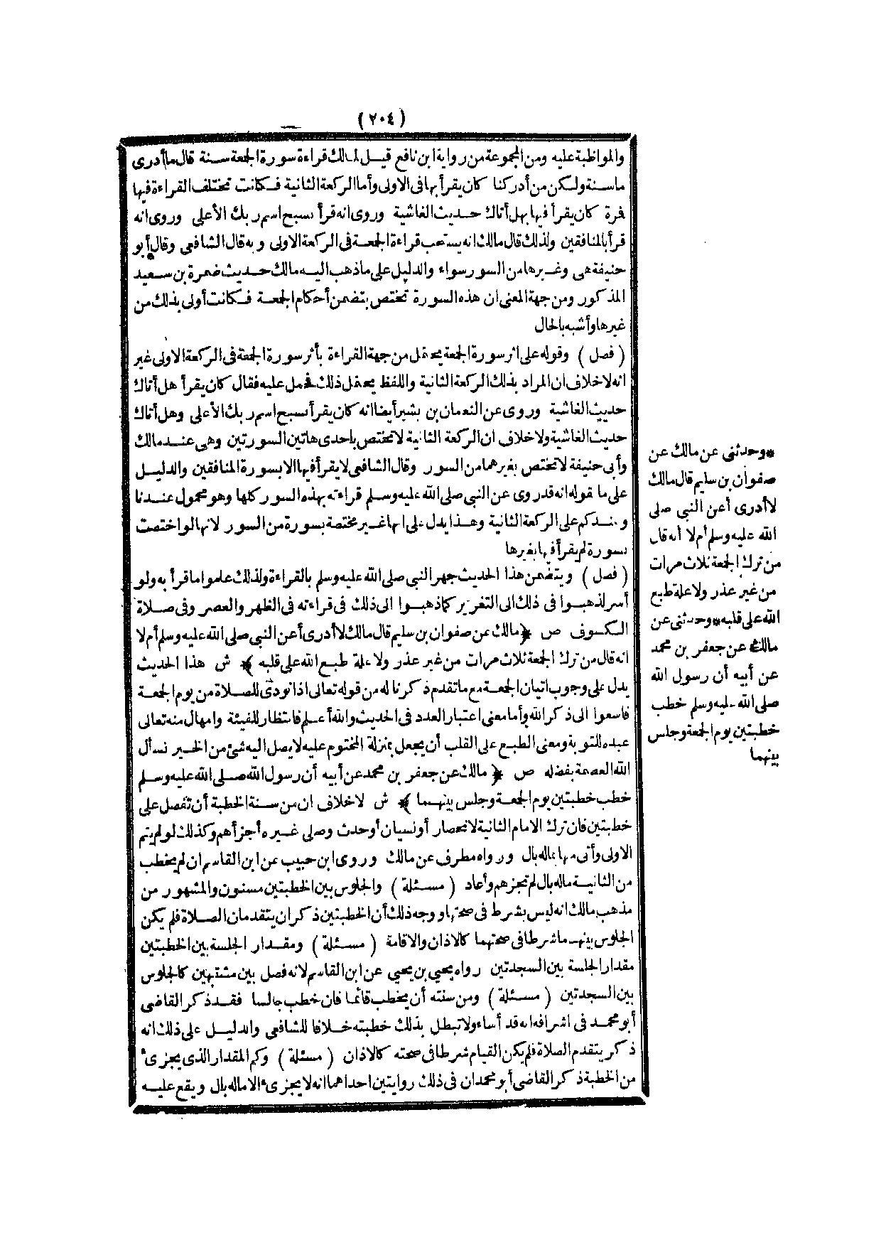 (ص) : (مَالِكٌ عَنْ جَعْفَرِ بْنِ مُحَمَّدٍ عَنْ أَبِيهِ «أَنَّ رَسُولَ اللَّهِ - صَلَّى اللَّهُ عَلَيْهِ وَسَلَّمَ - خَطَبَ خُطْبَتَيْنِ يَوْمَ الْجُمُعَةِ وَجَلَسَ بَيْنَهُمَا» ) .