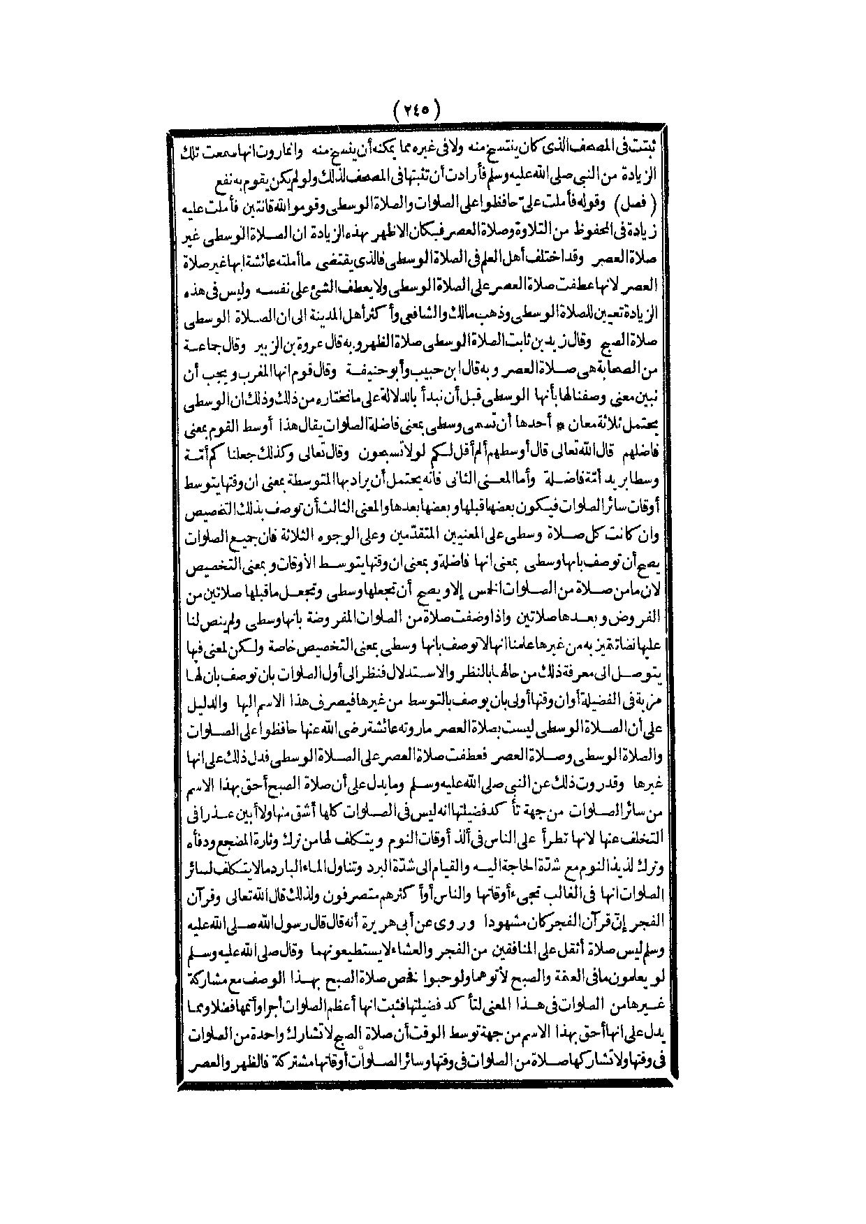 وَإِنْ كَانَتْ كُلُّ صَلَاةٍ وُسْطَى عَلَى الْمَعْنَيَيْنِ الْمُتَقَدِّمَيْنِ وَعَلَى الْوُجُوهِ الثَّلَاثَةِ فَإِنَّ جَمِيعَ الصَّلَوَاتِ يَصِحُّ أَنْ تُوصَفَ بِأَنَّهَا وُسْطَى بِمَعْنَى أَنَّهَا فَاضِلَةٌ وَبِمَعْنَى أَنَّ وَقْتَهَا يَتَوَسَّطُ الْأَوْقَاتِ وَبِمَعْنَى التَّخْصِيصِ لِأَنَّ مَا مِنْ صَلَاةٍ مِنْ الصَّلَوَاتِ الْخَمْسِ إلَّا وَيَصِحُّ أَنْ تَجْعَلَهَا وُسْطَى وَتَجْعَلَ مَا قَبْلَهَا صَلَاتَيْنِ مِنْ الْفُرُوضِ وَبَعْدَهَا صَلَاتَيْنِ وَإِذَا وَصَفْت صَلَاةً مِنْ الصَّلَوَاتِ الْمَفْرُوضَةِ بِأَنَّهَا وُسْطَى وَلَمْ يُنَصَّ لَنَا عَلَيْهَا نَصًّا تَتَمَيَّزُ بِهِ مِنْ غَيْرِهَا عَلِمْنَا أَنَّهَا لَا تُوصَفُ بِأَنَّهَا وُسْطَى بِمَعْنَى التَّخْصِيصِ خَاصَّةً وَلَكِنْ لِمَعْنًى فِيهَا يُتَوَصَّلُ إلَى مَعْرِفَةِ ذَلِكَ مِنْ حَالِهَا بِالنَّظَرِ وَالِاسْتِدْلَالِ فَنَظَرٌ إلَى أَوَّلِ الصَّلَوَاتِ بِأَنْ تُوصَفَ بِأَنَّ لَهَا مَزِيَّةٌ فِي الْفَضِيلَةِ أَوْ أَنَّ وَقْتَهَا أَوْلَى بِأَنْ يُوصَفَ بِالتَّوَسُّطِ مِنْ غَيْرِهَا فَيُصْرَفَ هَذَا الِاسْمُ إلَيْهَا.