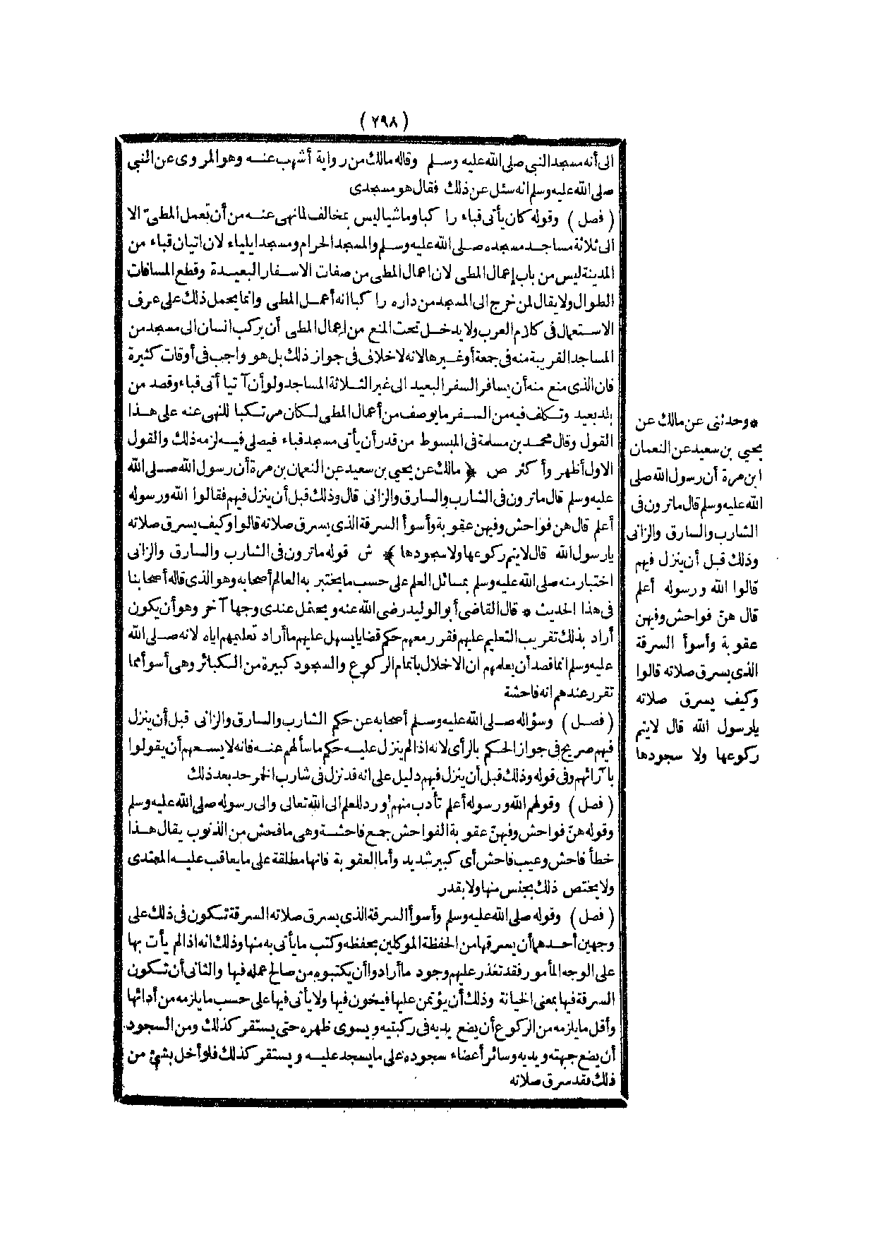 (ص) : (مَالِكٌ عَنْ يَحْيَى بْنِ سَعِيدٍ عَنْ النُّعْمَانِ بْنِ مُرَّةَ أَنَّ رَسُولَ اللَّهِ - صَلَّى اللَّهُ عَلَيْهِ وَسَلَّمَ - قَالَ «مَا تَرَوْنَ فِي الشَّارِبِ وَالسَّارِقِ وَالزَّانِي قَالَ وَذَلِكَ قَبْلَ أَنْ يَنْزِلَ فِيهِمْ فَقَالُوا اللَّهُ وَرَسُولُهُ أَعْلَمُ قَالَ هُنَّ فَوَاحِشُ وَفِيهِنَّ عُقُوبَةٌ وَأَسْوَأُ السَّرِقَةِ الَّذِي يَسْرِقُ صَلَاتَهُ قَالُوا وَكَيْفَ يَسْرِقُ صَلَاتَهُ يَا رَسُولَ اللَّهِ قَالَ لَا يُتِمُّ رُكُوعَهَا وَلَا سُجُودَهَا» )