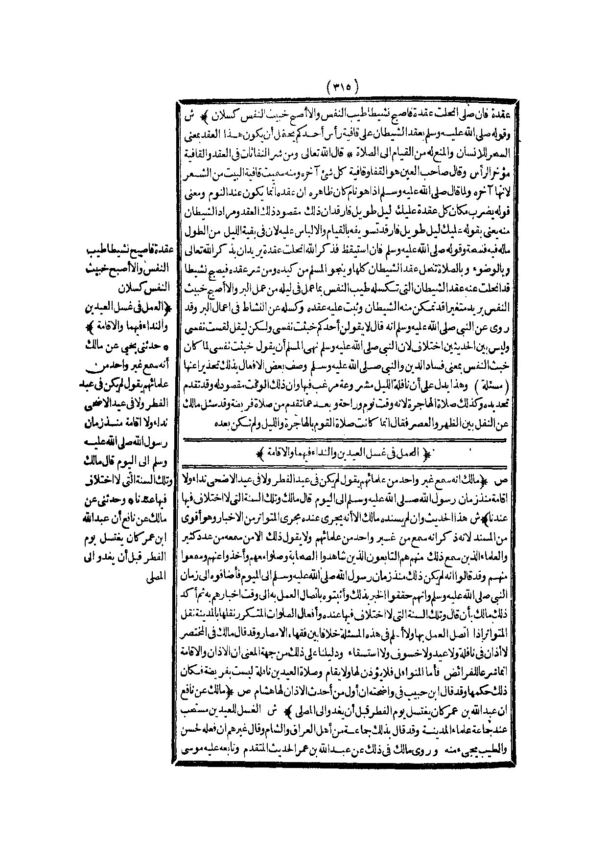الْعَمَلُ فِي غُسْلِ الْعِيدَيْنِ وَالنِّدَاءِ فِيهِمَا وَالْإِقَامَةِ (ص) : (مَالِكٌ أَنَّهُ سَمِعَ غَيْرَ وَاحِدٍ مِنْ عُلَمَائِهِمْ يَقُولُ لَمْ يَكُنْ فِي عِيدِ الْفِطْرِ وَلَا فِي عِيدِ الْأَضْحَى نِدَاءٌ وَلَا إقَامَةٌ مُنْذُ زَمَانِ رَسُولِ اللَّهِ - صَلَّى اللَّهُ عَلَيْهِ وَسَلَّمَ - إلَى الْيَوْمِ قَالَ مَالِكٌ وَتِلْكَ السُّنَّةُ الَّتِي لَا اخْتِلَافَ فِيهَا عِنْدَنَا) .