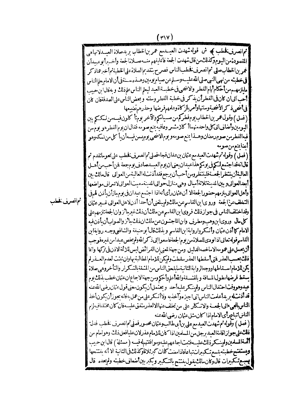 ـــــــــــــــــــــــــــــQ (ش) : قَوْلُهُ شَهِدْتُ الْعِيدَ مَعَ عُمَرَ بْنِ الْخَطَّابِ يُرِيدُ صَلَاةُ الْعِيدِ لِأَنَّهَا هِيَ الْمَقْصُودَةُ مِنْ الْيَوْمِ وَكَذَلِكَ مَنْ قَالَ شَهِدْت الْجُمُعَةَ فَإِنَّمَا يُفْهَمُ مِنْهُ صَلَاةُ الْجُمُعَةِ وَأَخْبَرَ أَبُو عُبَيْدٍ أَنَّ عُمَرَ بْنَ الْخَطَّابِ صَلَّى ثُمَّ انْصَرَفَ فَخَطَبَ النَّاسَ فَصَرَّحَ بِتَقْدِيمِ الصَّلَاةِ عَلَى الْخُطْبَةِ ثُمَّ أَخْبَرَ عَمَّا ذَكَرَ فِي خُطْبَتِهِ مِنْ نَهْيِ النَّبِيِّ - صَلَّى اللَّهُ عَلَيْهِ وَسَلَّمَ - عَنْ صِيَامِ يَوْمَيْنِ وَهَذِهِ سُنَّةٌ فِي أَنَّ الْإِمَامَ يُعَلِّمُ النَّاسَ مَا يَلْزَمُهُمْ مِنْ أَحْكَامِ أَيَّامِ الْفِطْرِ وَالْأَضْحَى فِي خُطْبَةِ الْعِيدِ لِيَعْلَمَ النَّاسُ عِلْمَ ذَلِكَ وَبِهِ قَالَ ابْنُ حَبِيبٍ أَحَبُّ إلَيَّ إنْ كَانَ فِي الْفِطْرِ أَنْ يَذْكُرَ فِي خُطْبَةِ الْفِطْرِ وَسُنَّتِهِ وَيَحُضَّ النَّاسَ عَلَى الصَّدَقَةِ فَإِنْ كَانَ فِي أَضْحَى ذَكَرَ الْأُضْحِيَّةَ وَسُنَّتَهَا وَأَمَرَ بِالزَّكَاةِ وَعَلَّمَهُمْ فَرْضَهَا وَحَذَّرَهُمْ تَضْيِيعَهَا.