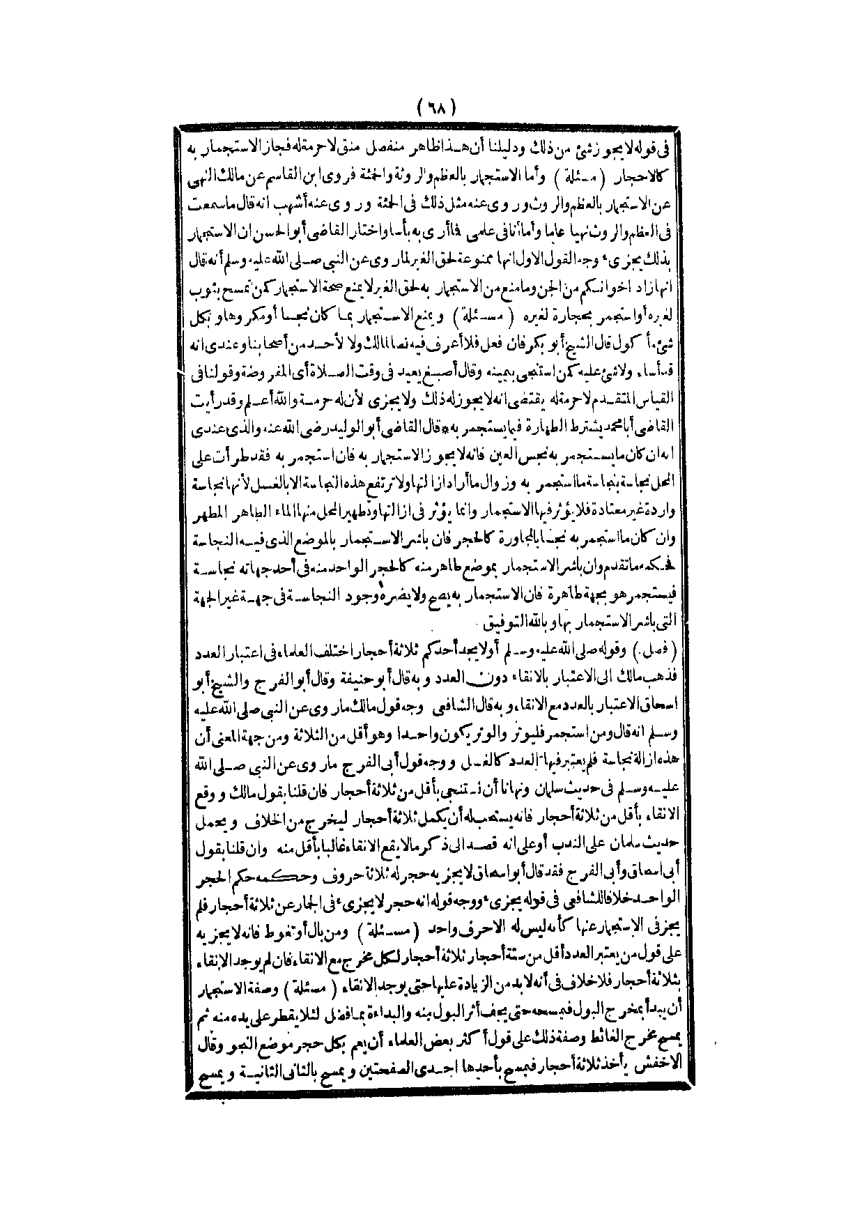وَقَوْلُهُ - صَلَّى اللَّهُ عَلَيْهِ وَسَلَّمَ - «أَوَلَا يَجِدُ أَحَدُكُمْ ثَلَاثَةَ أَحْجَارٍ» اخْتَلَفَ الْعُلَمَاءُ فِي اعْتِبَارِ الْعَدَدِ فَذَهَبَ مَالِكٌ إلَى الِاعْتِبَارِ بِالْإِنْقَاءِ دُونَ الْعَدَدِ وَبِهِ قَالَ أَبُو حَنِيفَةَ.