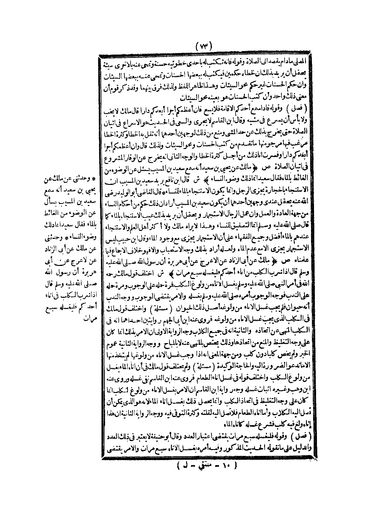 (ص) : (مَالِكٌ عَنْ يَحْيَى بْنِ سَعِيدٍ أَنَّهُ سَمِعَ سَعِيدَ بْنَ الْمُسَيِّبِ يَسْأَلُ عَنْ الْوُضُوءِ مِنْ الْغَائِطِ بِالْمَاءِ فَقَالَ سَعِيدٌ إنَّمَا ذَلِكَ وُضُوءُ النِّسَاءِ) .