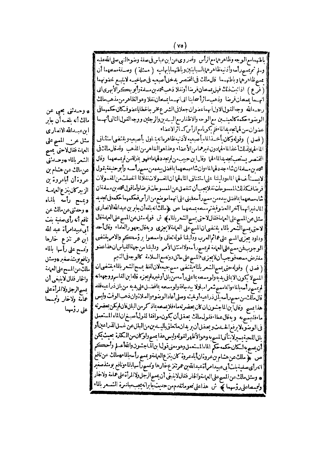 (ص) : (مَالِكٌ أَنَّهُ بَلَغَهُ أَنَّ جَابِرَ بْنَ عَبْدِ اللَّهِ الْأَنْصَارِيَّ سُئِلَ عَنْ الْمَسْحِ عَلَى الْعِمَامَةِ فَقَالَ لَا حَتَّى يَمْسَحَ الشَّعْرَ بِالْمَاءِ) .