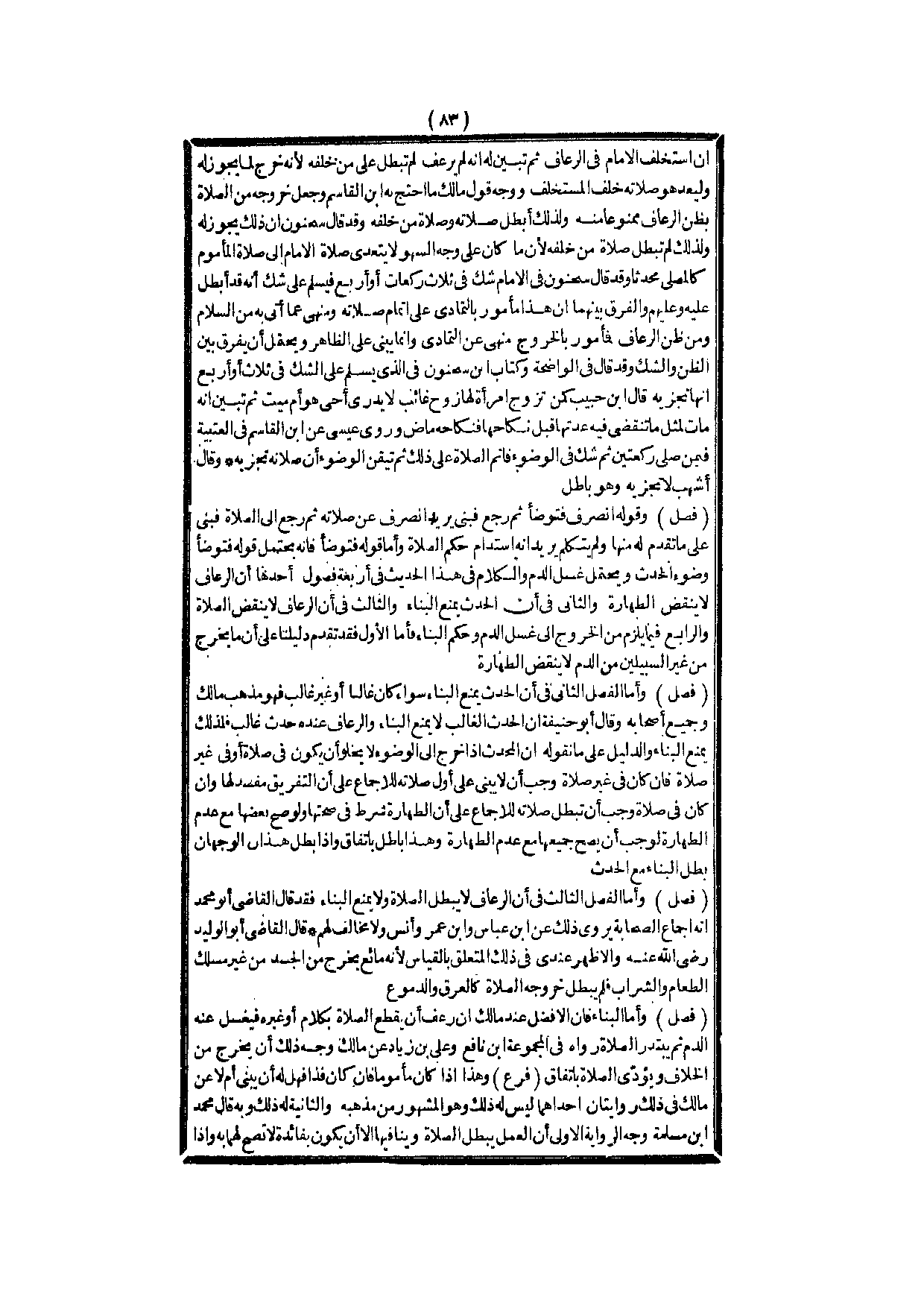 وَأَمَّا الْفَصْلُ الثَّانِي فِي أَنَّ الْحَدَثَ يَمْنَعُ الْبِنَاءَ سَوَاءٌ كَانَ غَالِبًا أَوْ غَيْرَ غَالِبٍ فَهُوَ مَذْهَبُ مَالِكٍ وَجَمِيعِ أَصْحَابِهِ.