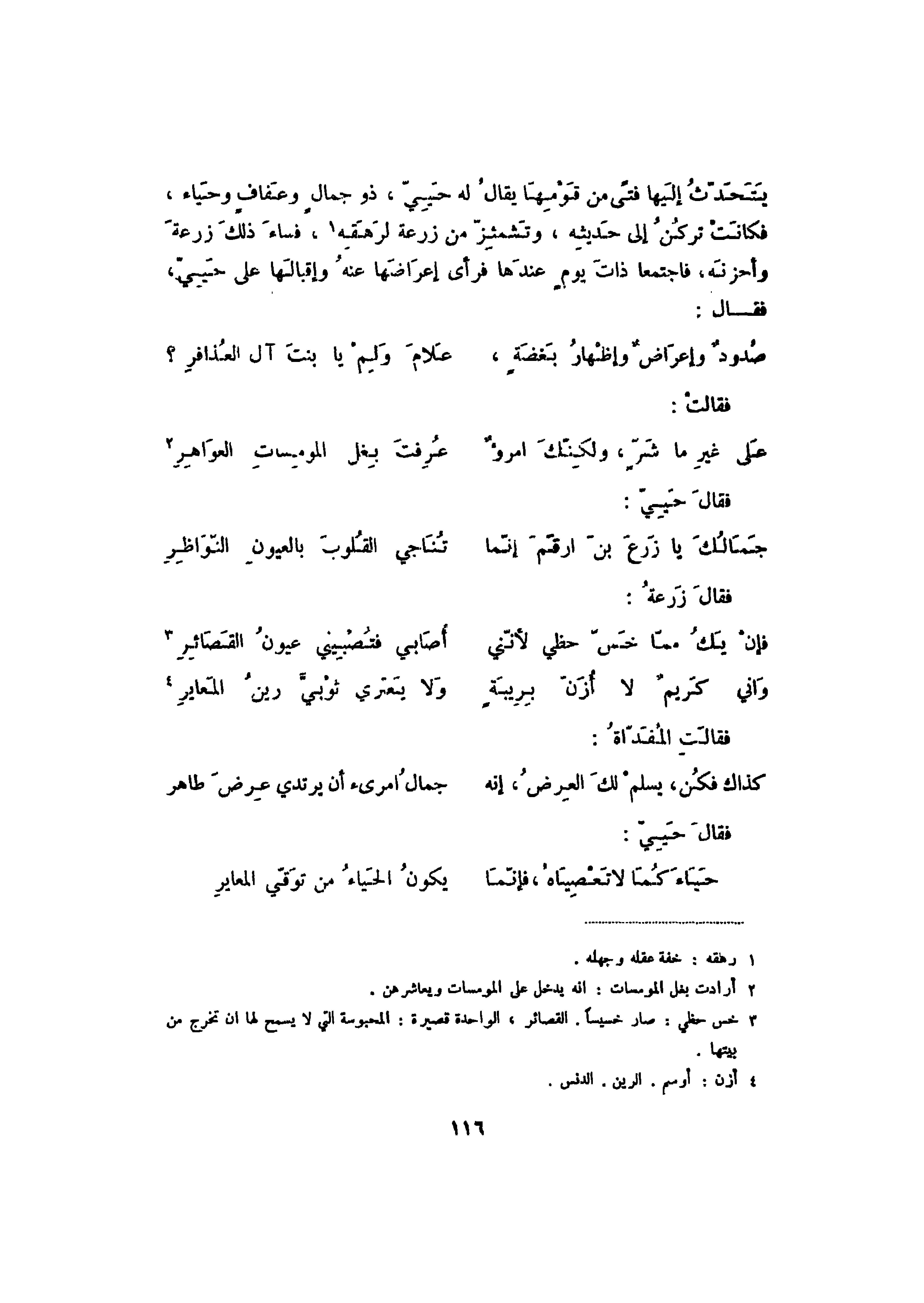 جَمَالُكَ يا زَرعَ بنَ ارقَمَ إنّما ... تُنَاجي القُلوبَ بالعيونِ النّوَاظِرِ.