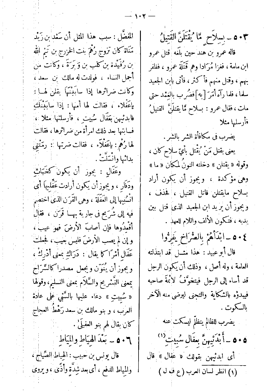 505- أَبْدَئِيِهنَّ بِعفَالِ سُبِيتِ (انظر لسان العرب (ع ف ل))