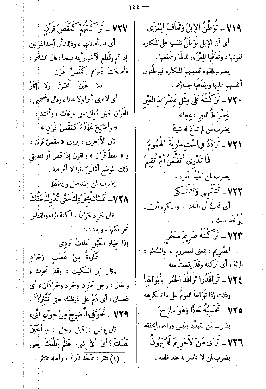 719- تُوَطِّنُ الإِبُل وَتَعَافُ المِعْزَى.