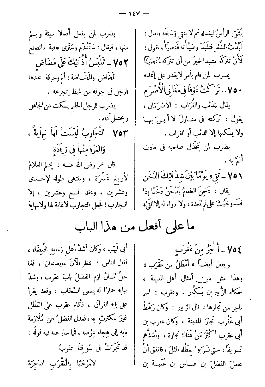 قد تَجَرَتْ في سُوقِنَا عقربٌ ... لا مَرْحَباً بِالْعَقْرَبِ التاجِرَهْ -[148]-