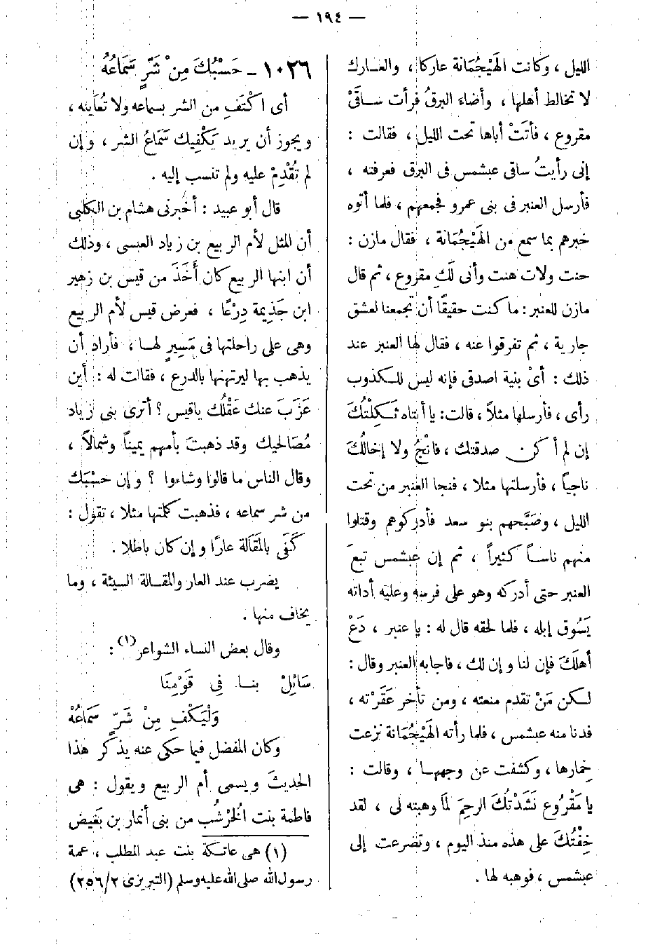 وكان المفضل فيما حكى عنه يذكر هذا الحديث ويسمي أم الربيع ويقول: هي فاطمة بنت الخُرْشُب من بني أنمار بن بَغيض.