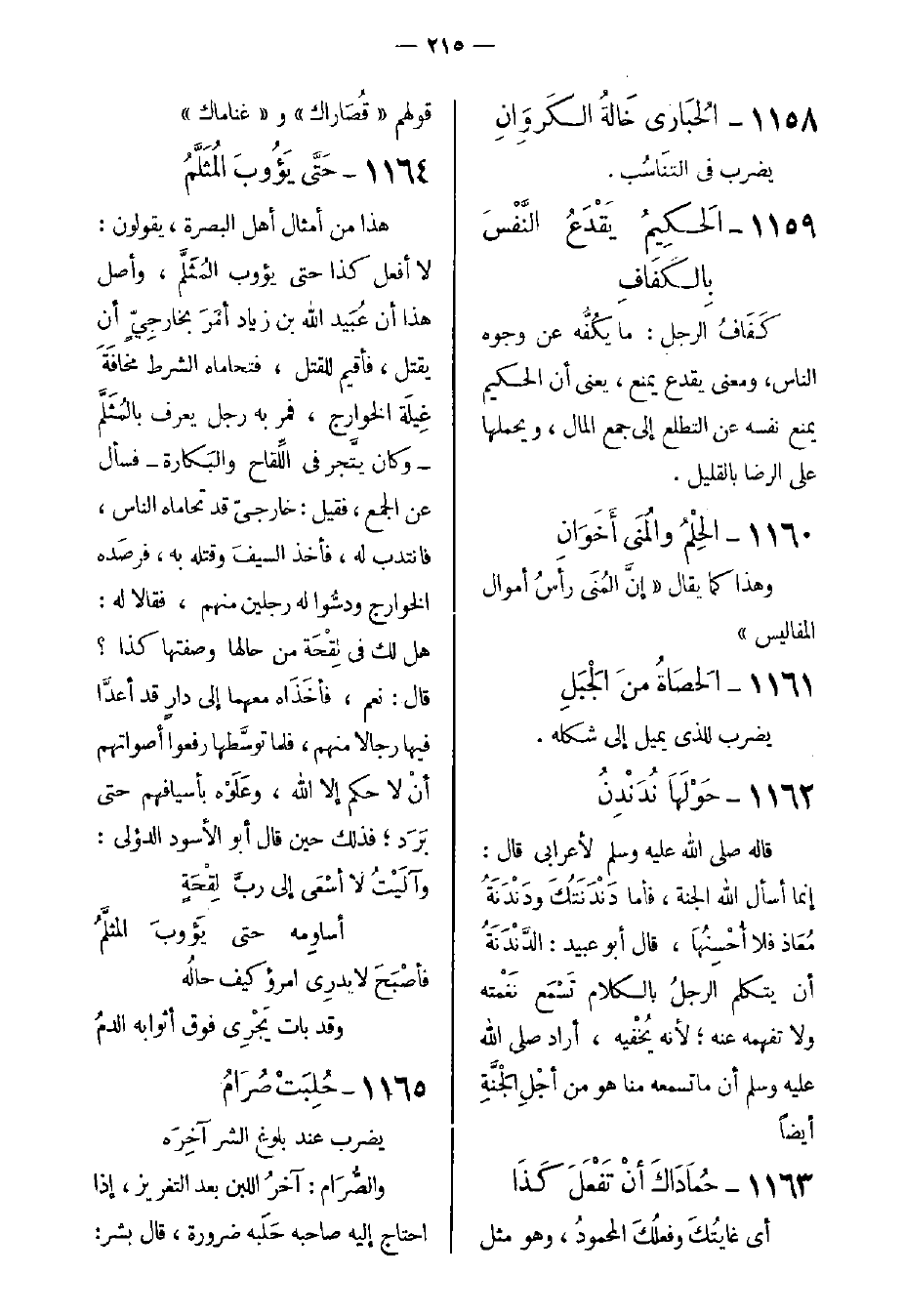 1159- الحَكِيمُ يَقْدَعُ النَّفْسَ بِالكَفَافِ.
