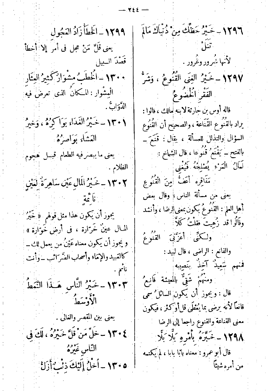 1297- خَيْرُ الغِنَى القُنُوعُ، وَشَرُّ الفَقْرِ الْخُضُوعُ.
