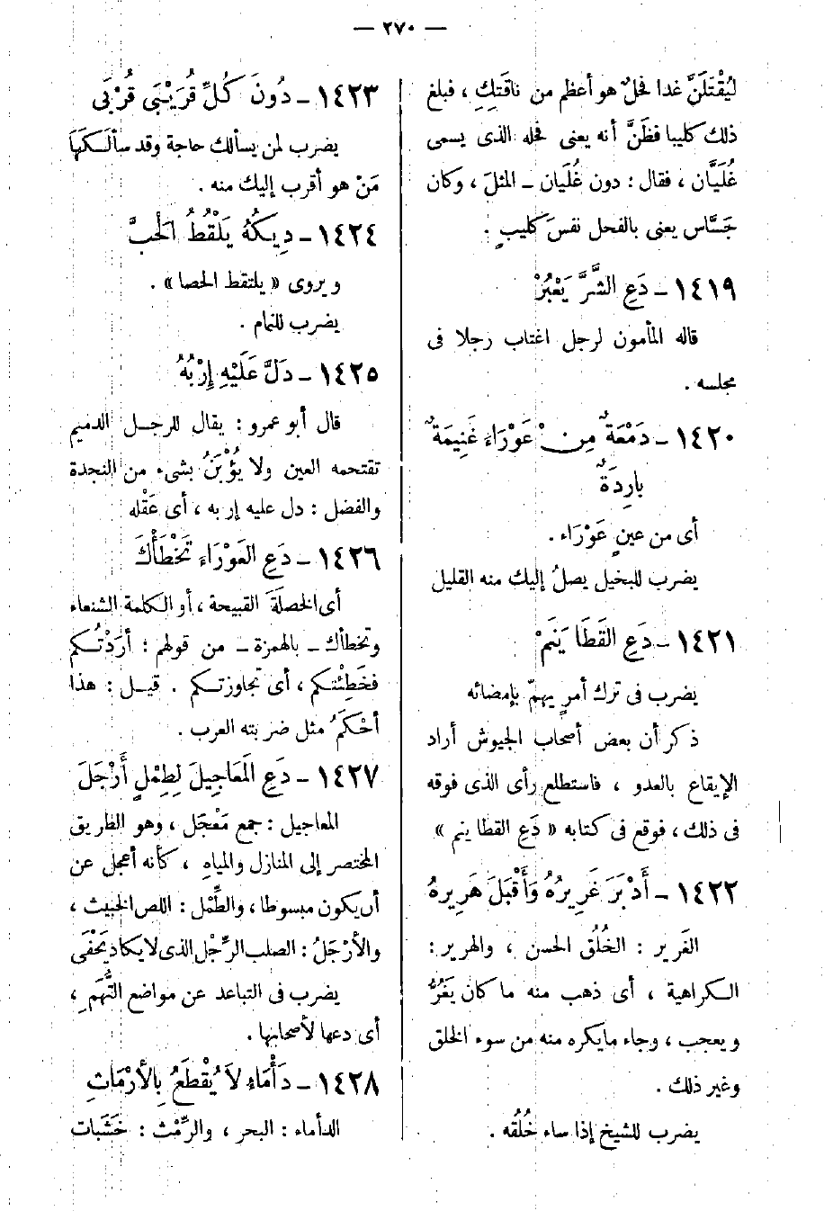 1420- دَمْعَةٌ مِنْ عَوْرَاءَ غَنِيمَةٌ بارِدَةٌ.