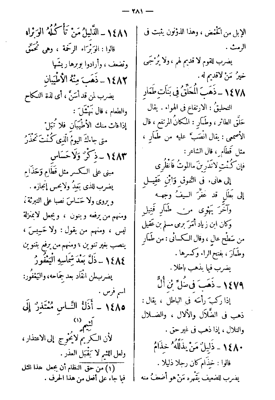 1481- الذَّلِيلُ مَنْ تَأْكُلُهُ الوَبْراءُ.
