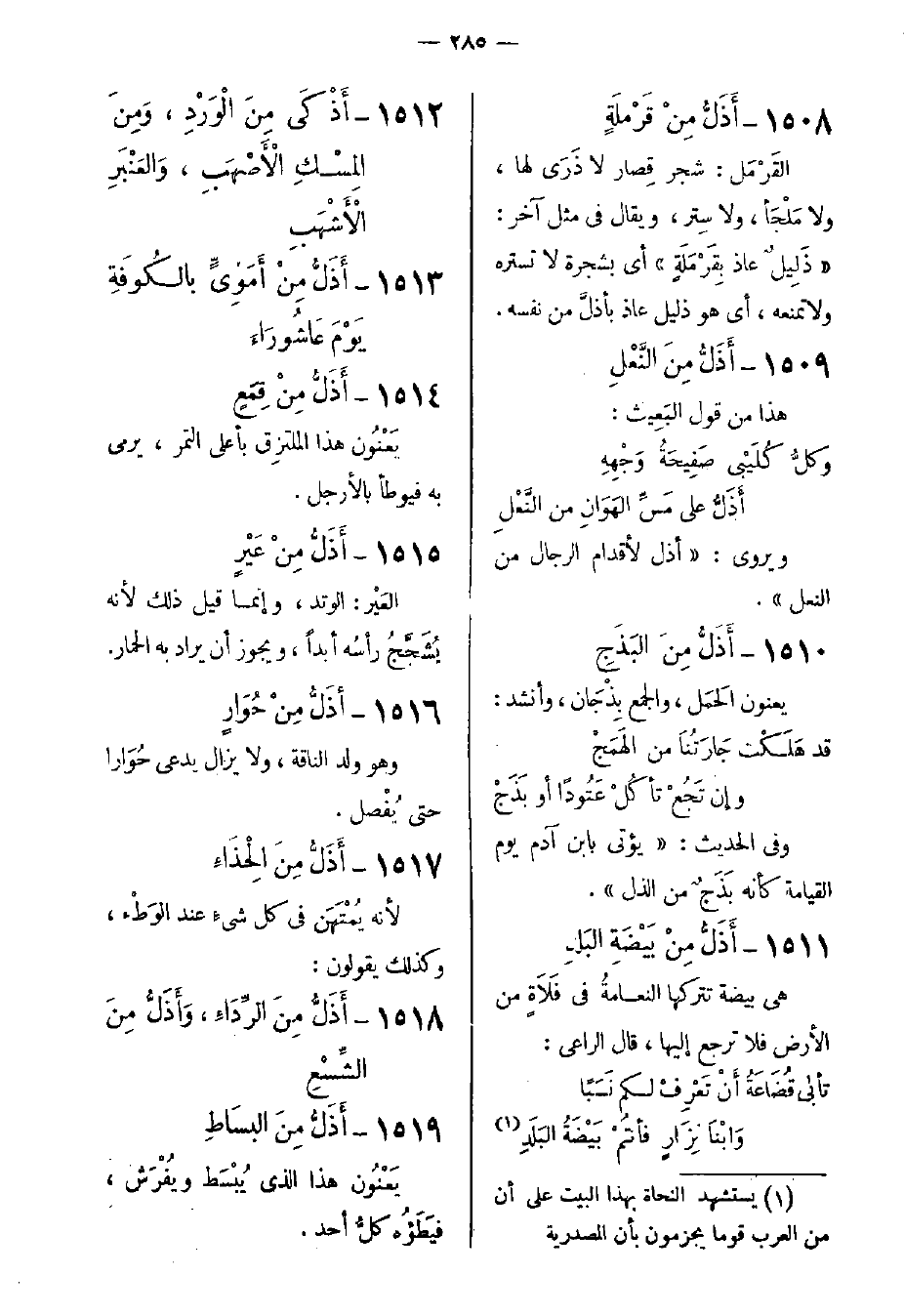 1510- أَذَلُّ مِنَ البَذَجِ.