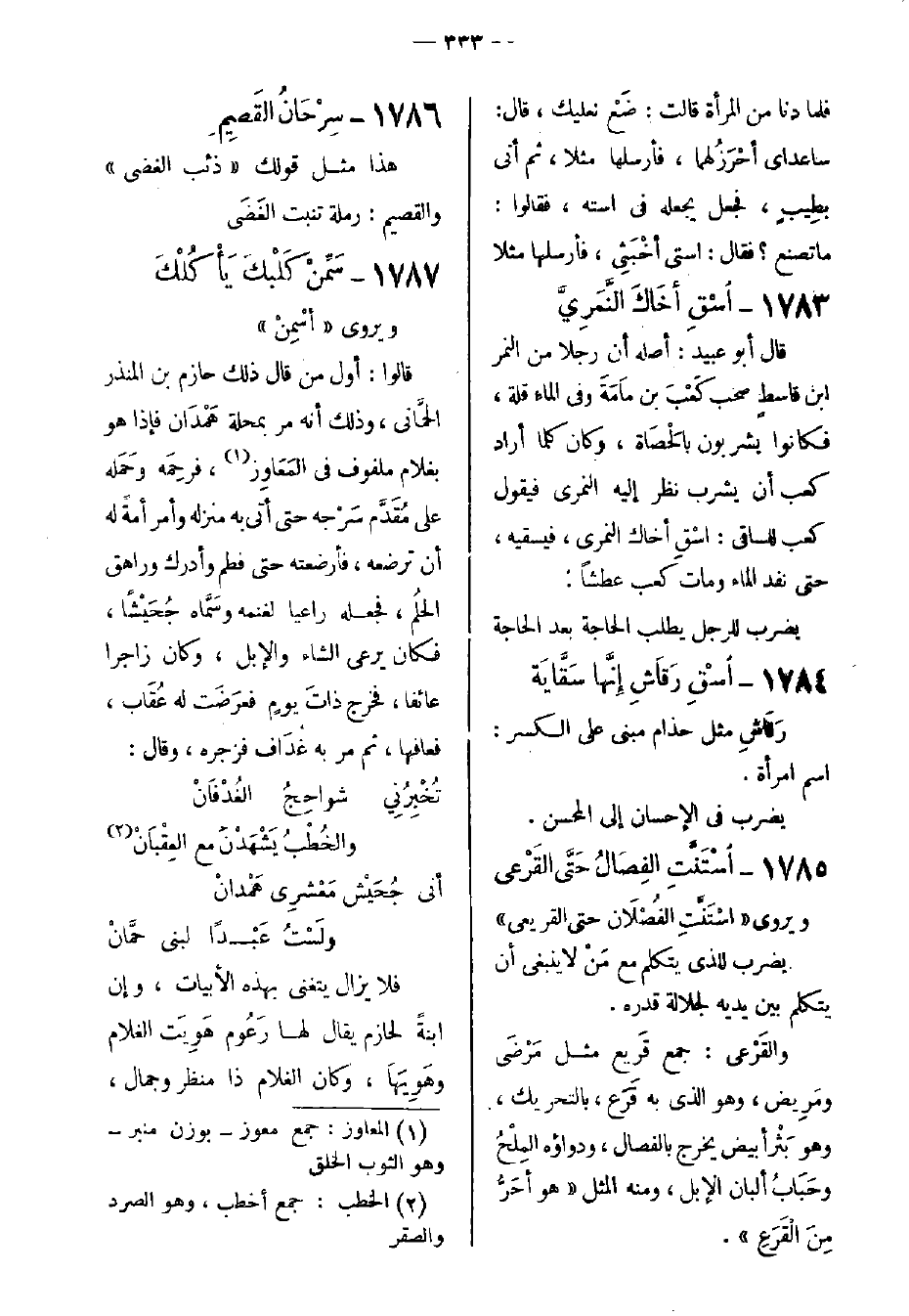 1785- اُسْتَنَّتِ الِفصَالُ حَتَّى القَرْعى