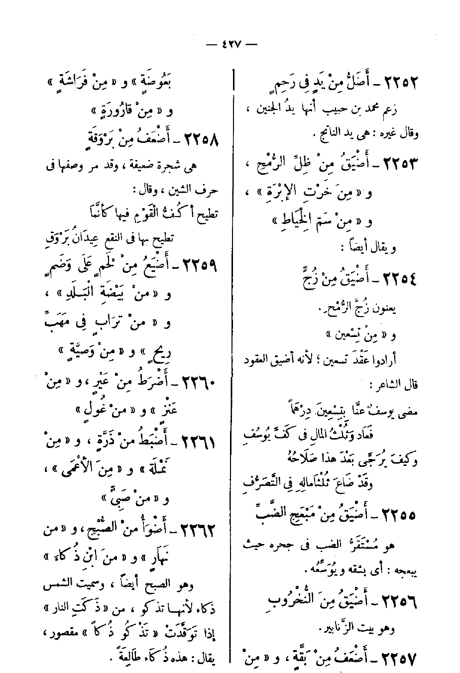 2253- أَضْيَقُ مِنْ ظِلِّ الرُّمْحِ، و"مِنَ خَرْتِ الأبْرَةِ" و"مِنْ سَمّ الِخْيَاطِ"