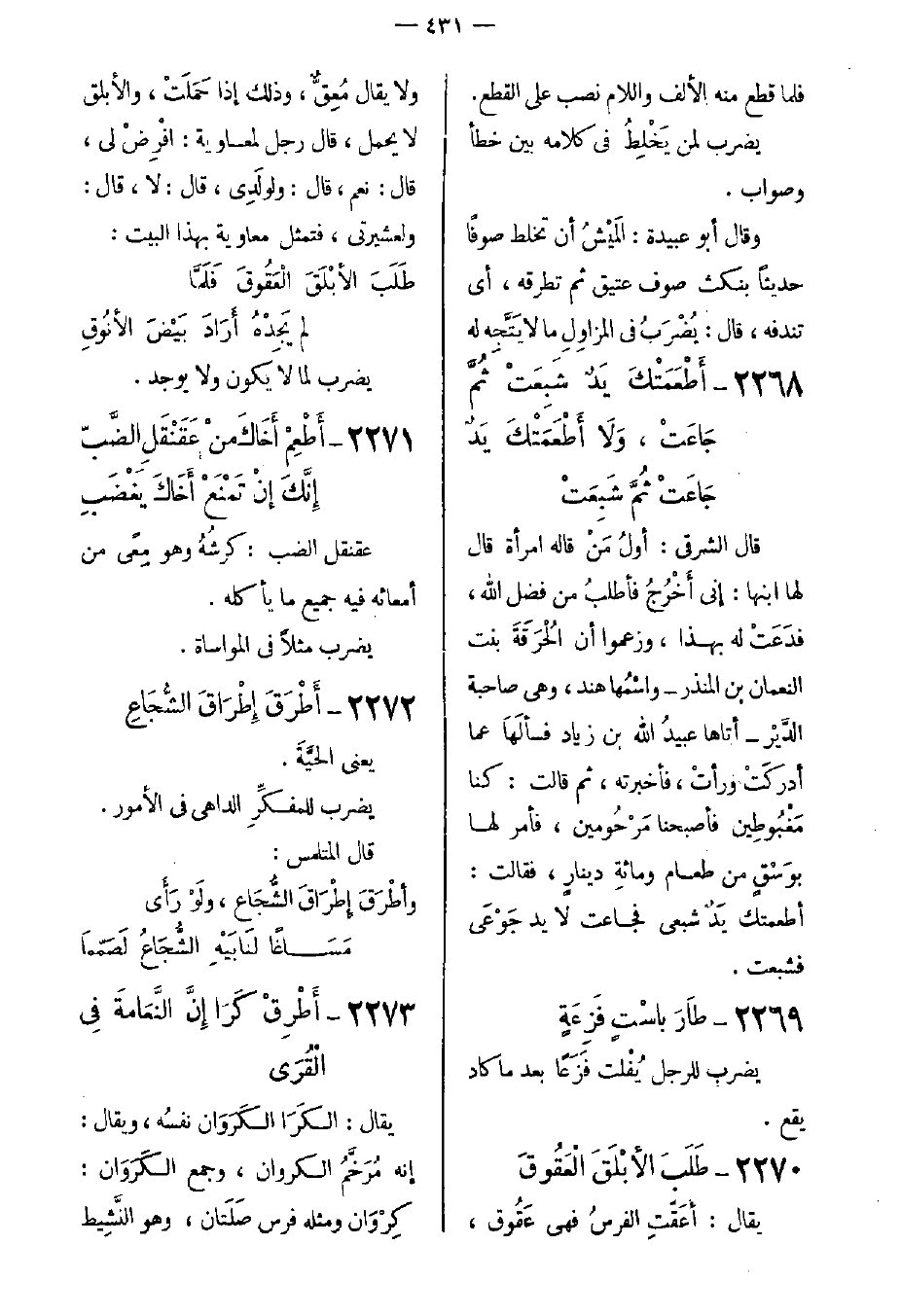2273- أَطْرِقْ كَرَا إِنَّ النَّعَامةَ فِي الْقُرَى.