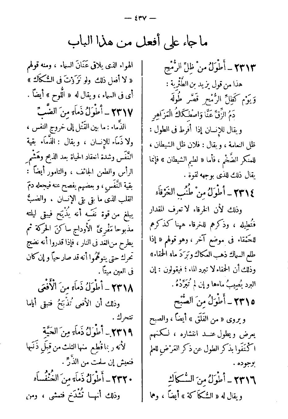 2319- أطْوَلُ ذَمَاءً مِنَ الحَيَّةِ.