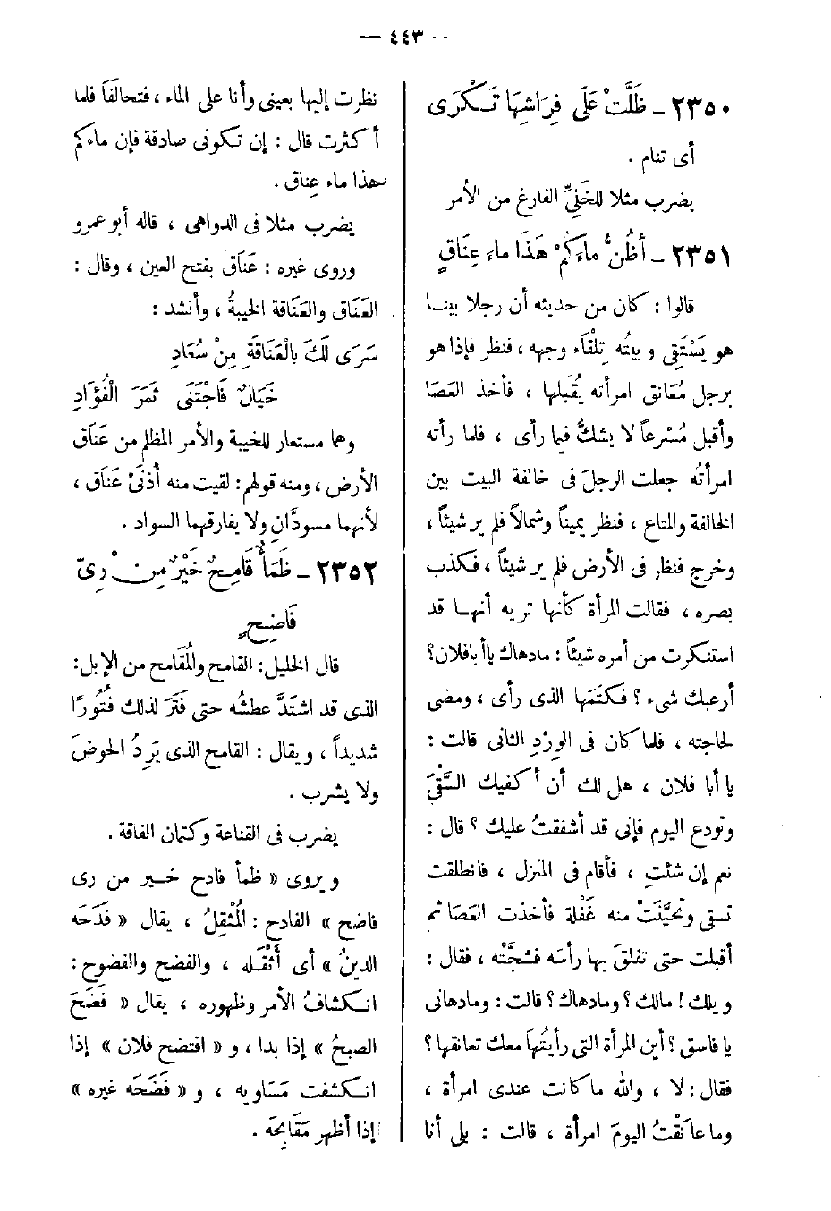 2351- أظُنُّ ماءَكُمْ هَذَا ماءَ عِنَاقٍ.