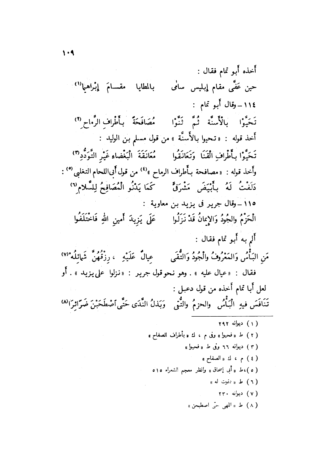 وأخذ قوله " مصافحة بأطراف الرماح " من قول أب يإسحاق التغلبي: