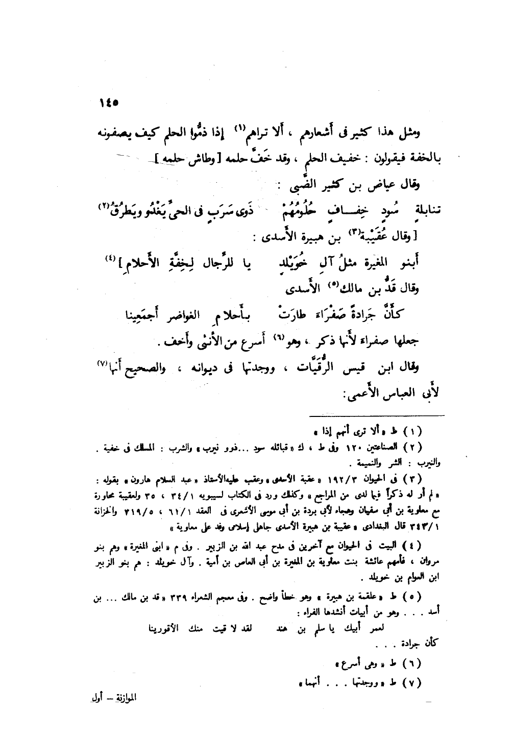 ومثل هذا كثير في أشعارهم، ألا ترى أنهم إذا ذموا الحلم كيف يصفونه بالخفة؛ فيقولون: خفيف الحلم، وقد خف حلمه؟ وقال عياض بن كثير الضبي: