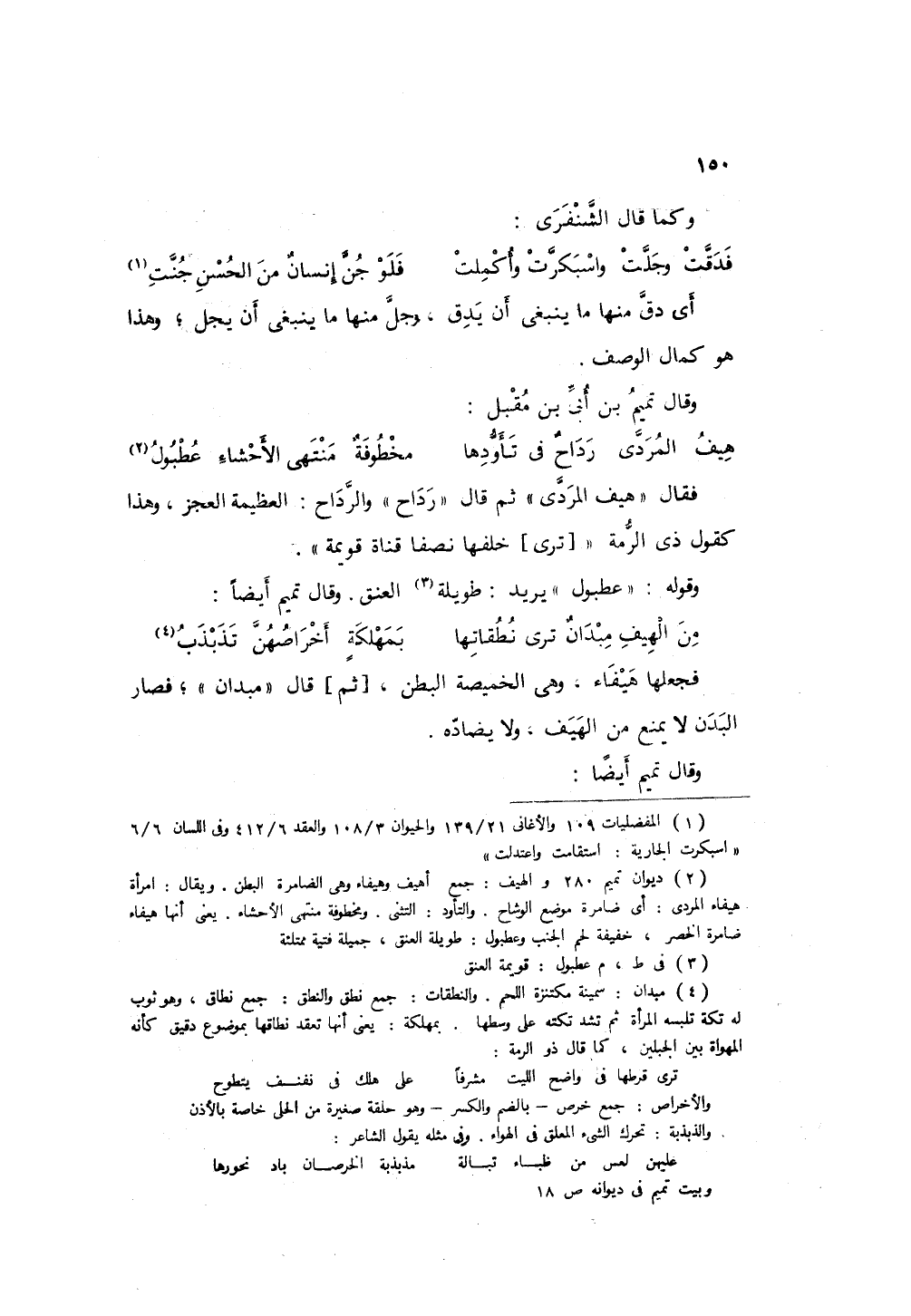 فجعلها هيفاء، وهي الخميصة البطن، ثم قال مبدان؛ فصار البدن لا يمنع من الهيف، ولا يضاده.
