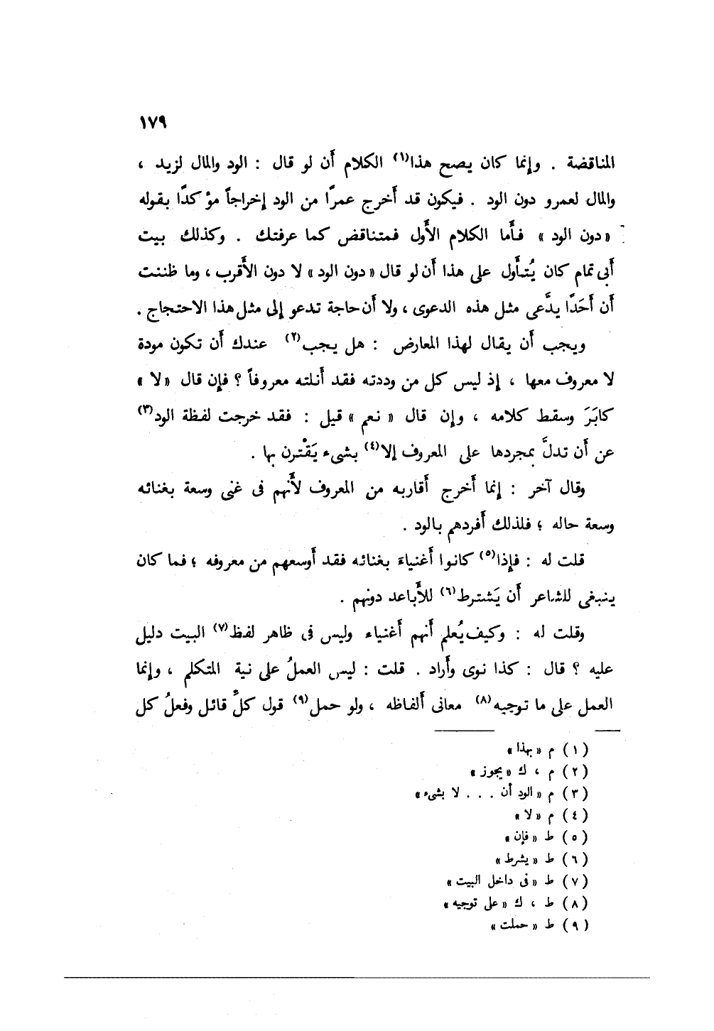 وقلت له: وكيف يعلم أنهم أغنياء، وليس في ظاهر البيت دليل عليه؟ قال: كذا نوى وأراد، قلت: وليس العمل على نية المتكلم، وإنما العمل على توجيه معاني ألفاظه، ولو حملت قول كل قائل وقعل كل
