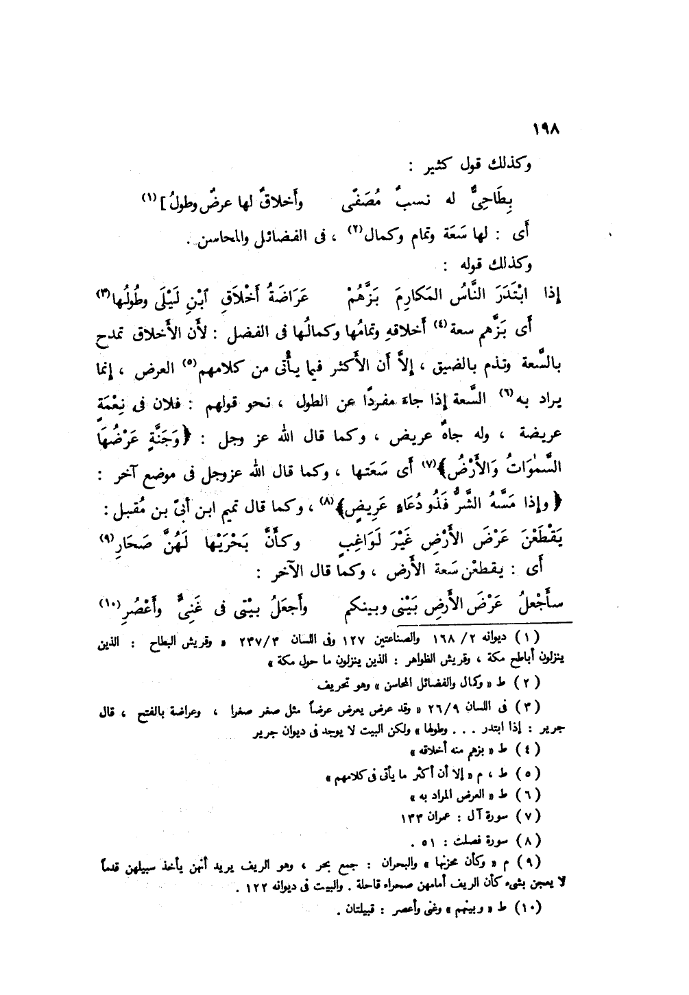 أي بزهم منه أخلاقه وتمامها وكمالها ف يالفضل؛ لأن الأخلاق تمدح بالسعة وتذم بالضيق، إلا أن أكثر ما يأتي في كلامهم العرض المراد به السعة إذا جاء مفرداً عن الطول، نحو قولهم: فلان في نعمةٍ عريضة، وله جاهٌ عريض، وكما قال الله عز وجل: " وجنةٍ عرضها السموات والأرض " أي: سعتها، وكما قال الله عز وجل في موضع آخر: " وإذا مسه الشر فذو دعاء عريضٍ "، وكما قال تميم بن أبي بن مقبل: