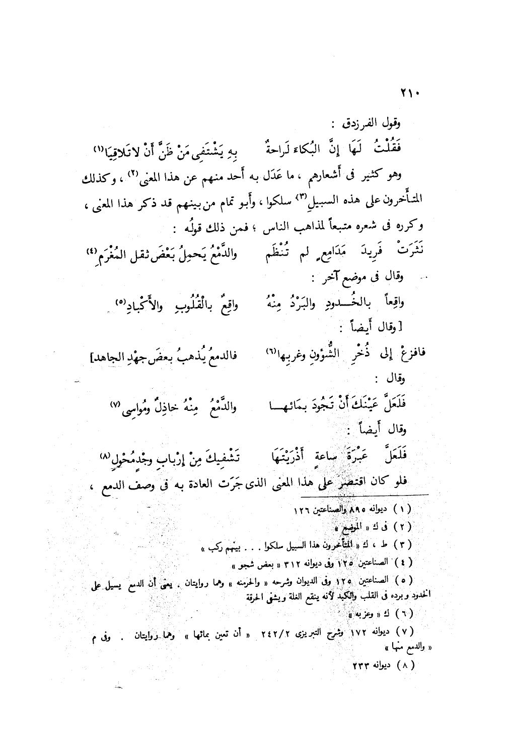 وهو كثير في أشعارهم، ما عدل به أحدٌ منهم عن هذا المعنى، وكذلك المتأخرون، هذا السبيل سلكوا، وأبو تمام من بينهم ركب هذا المعنى؛ وكرره في شعره متبعاً لمذاهب الناس؛ فمن ذلك قوله: