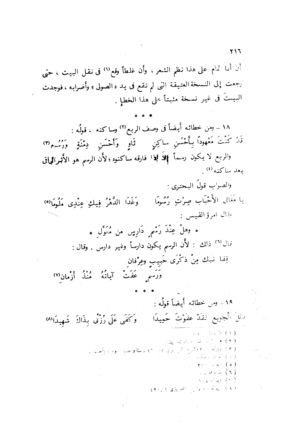 أن أبا تمام على هذا نظم الشعر، وأن غلطاً وقع عليه في نقل البيت، حتى رجعت إلى النسخ العتيقة التي لم تقع في يد الصولى وأضرابه، فوجدت البيت في غير نسخة مثبتاً على هذا الخطأ.