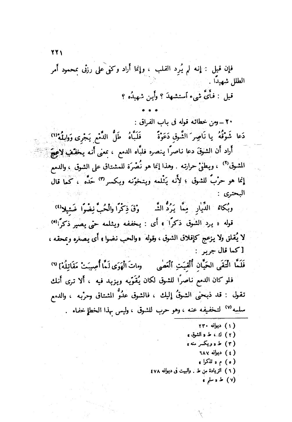 قيل: فبأي شيء أستشهد؟ وأين شهيده؟ 20 - ومن خطائه قوله في باب الفراق: