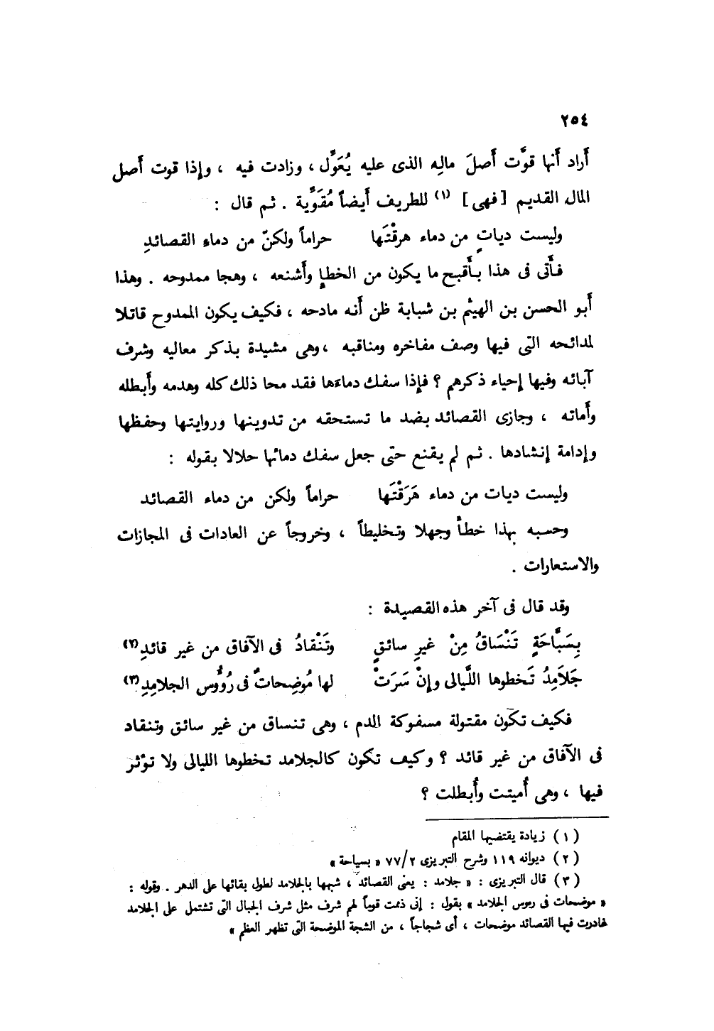 وليست ديات من دماء هرقتها ... حراماً ولكن من دماء القصائد