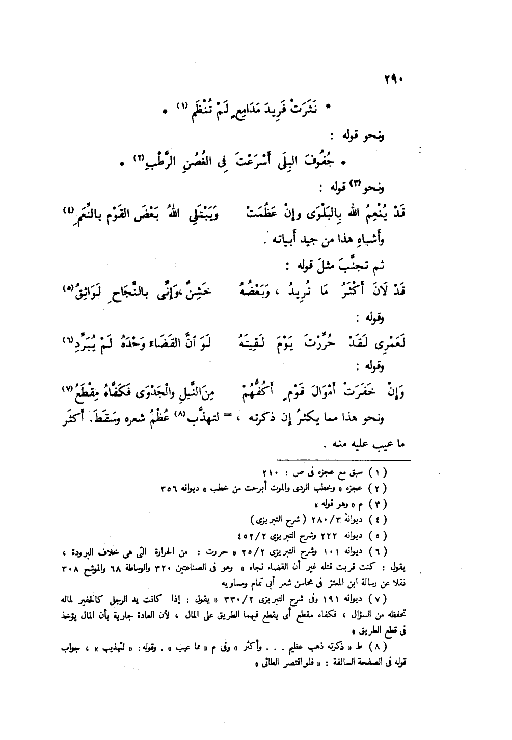 ونحو هذا مما يكثر، إن ذكرته ذهب عظيم شعره وسقط، وأكثر ما عيب عليه منه.