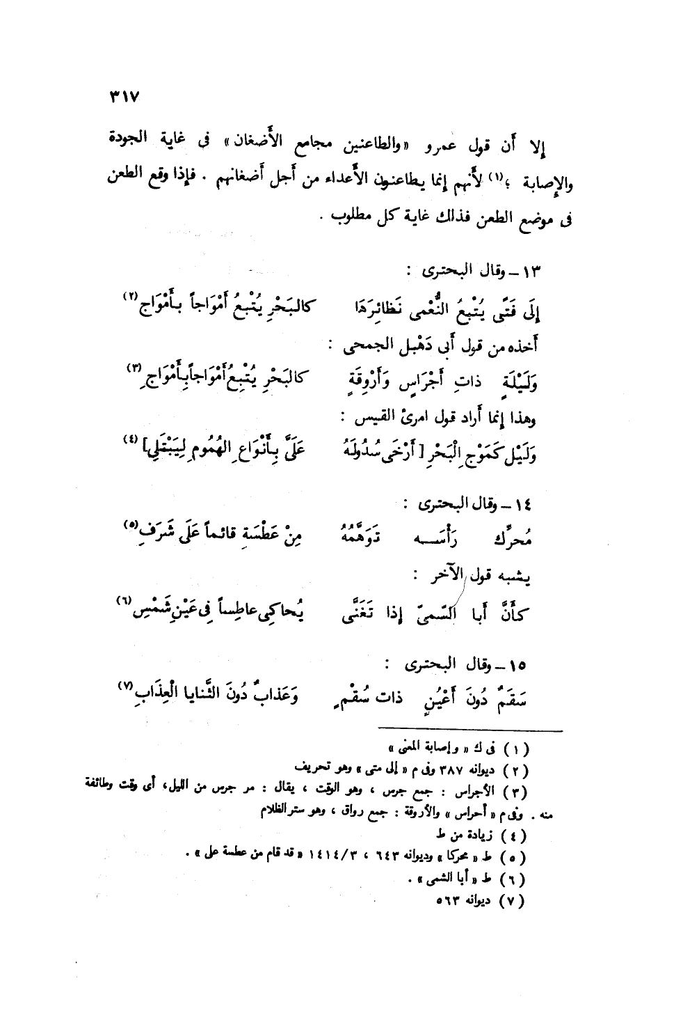 إلا أن قول عمرو " والطاعنين مجامع الأضغان " في غاية الجودة والإصابة؛ لأنهم إنما يطاعنون الأعداء من أجل أضغانهم، فإذا وقع الطعن موضع الضغن فذلك غاية كل مطلوب.