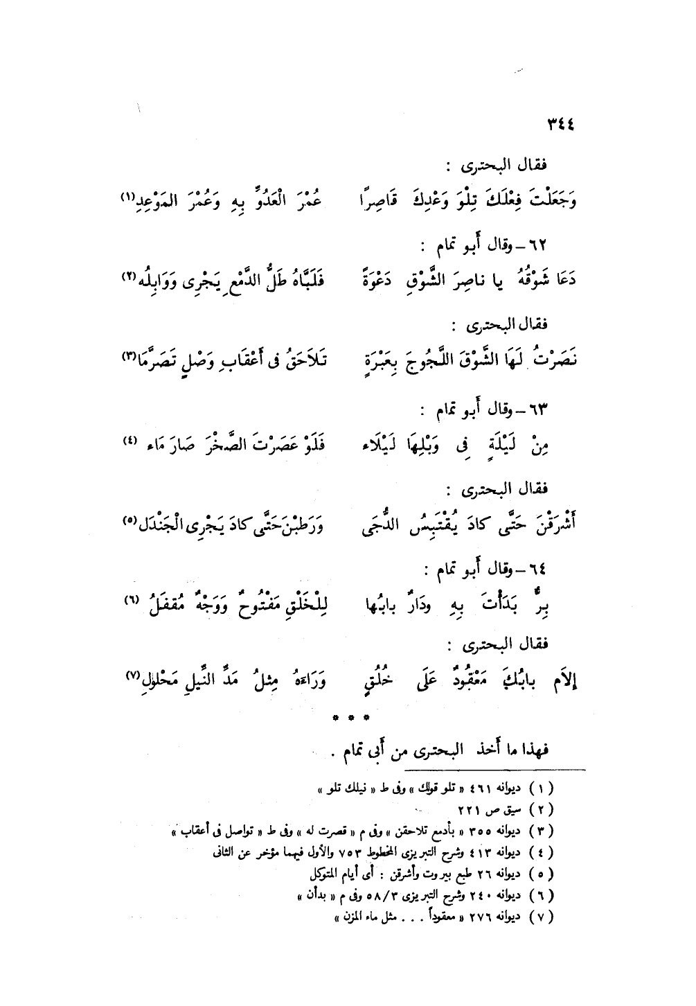فقال البحترى: