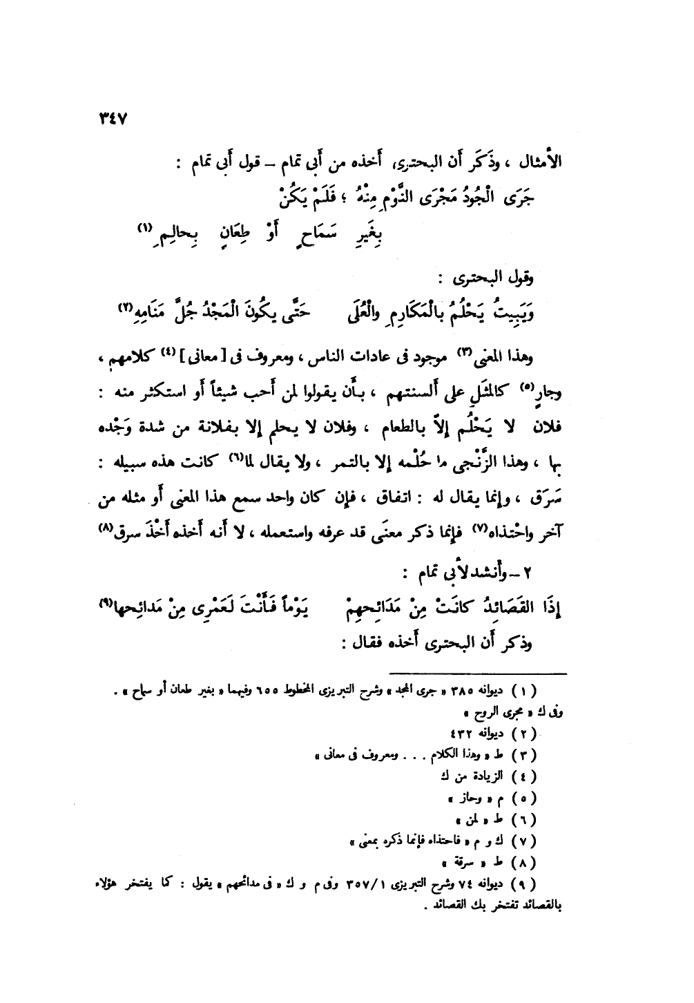 الأمثال وذكر أن البحتري أخذه من أبي تمام قول أبي تمام: