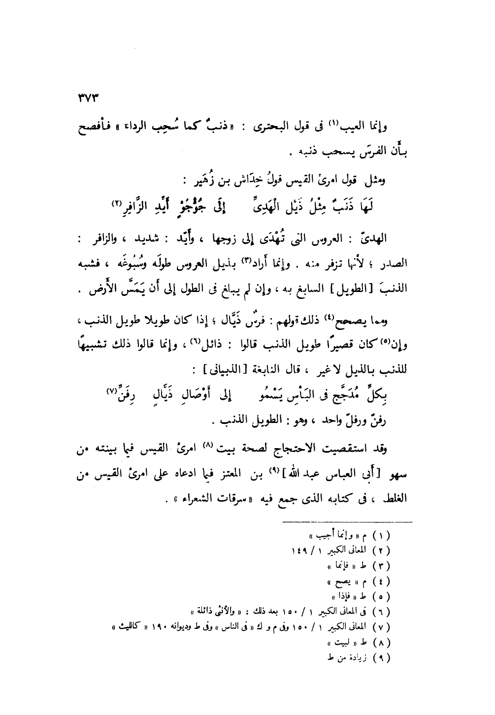 وإنما العيب في قول البحتري " ذنبٌ كما سحب الرداء " فأفصح بأن الفرس يسحب ذنبه.