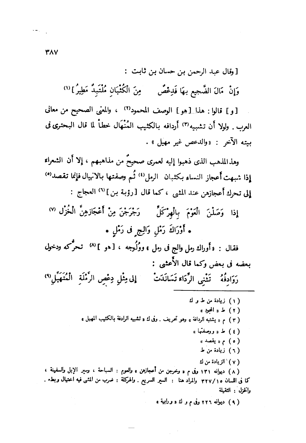 وهذا المذهب الذي ذهبوا إليه لعمري صحيحٌ من مذاهبهم، إلا أن الشعراء إذا شبهت أعجاز النساء بكثبان الرمل ووصفتها بالانهيال فإنما تقصد إلى تحرك أعجازهن عند المشي، كماقال رؤبة بن العجاج: