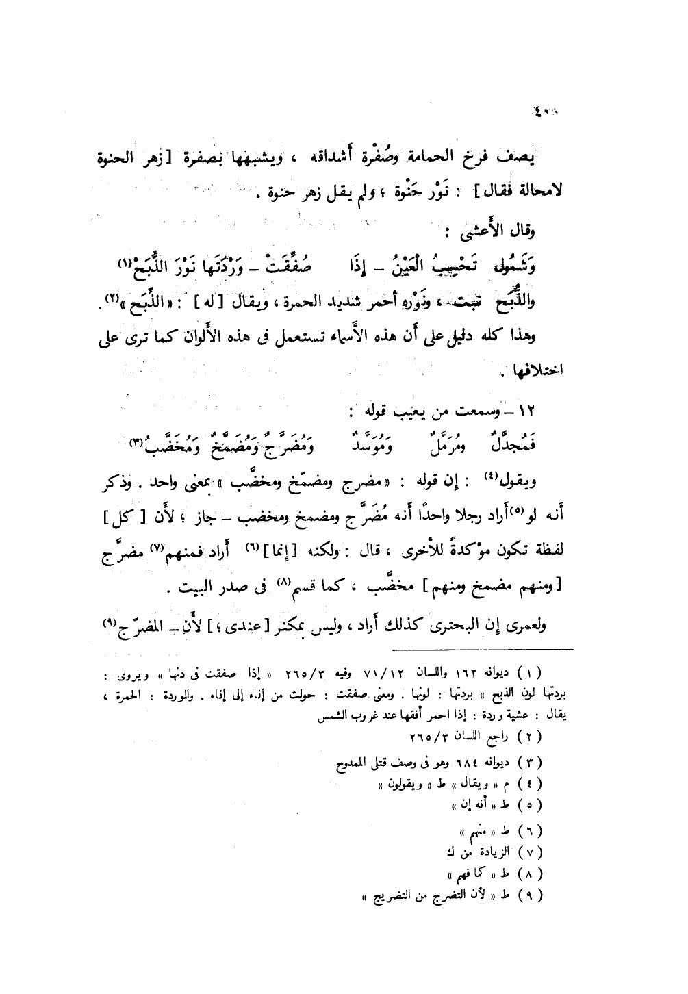 ولعمري إن البحتري كذلك أراد، وليس بمنكر؛ لأن المضرج