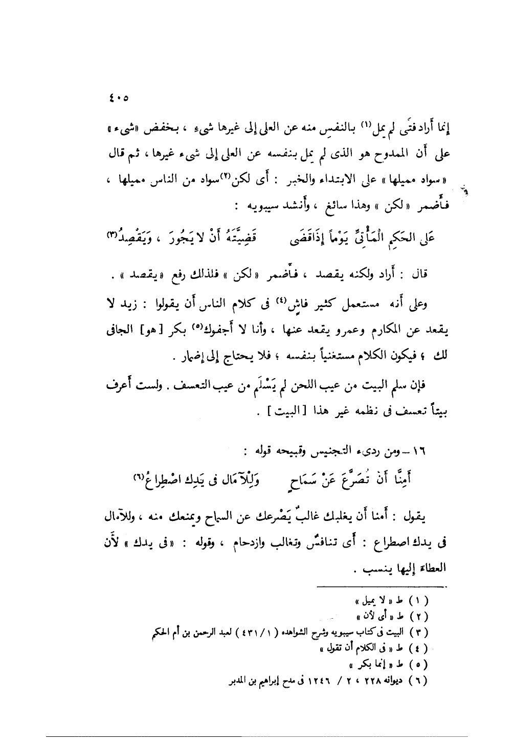 قال: أراد ولكنه يقصد، فأضمر " لكن " فلذلك رفع " يقصد "، وعلى أنه مستعمل كثير فاشٍ في الكلام أن تقول: زيد لا يقعد عن المكارم وعمرو يقعد عنها، وأنا لا أجفوك إنما بكر الجافي لك؛ فيكون الكلام مستغنياً بنفسه؛ فلا يحتاج إلى إضمار.