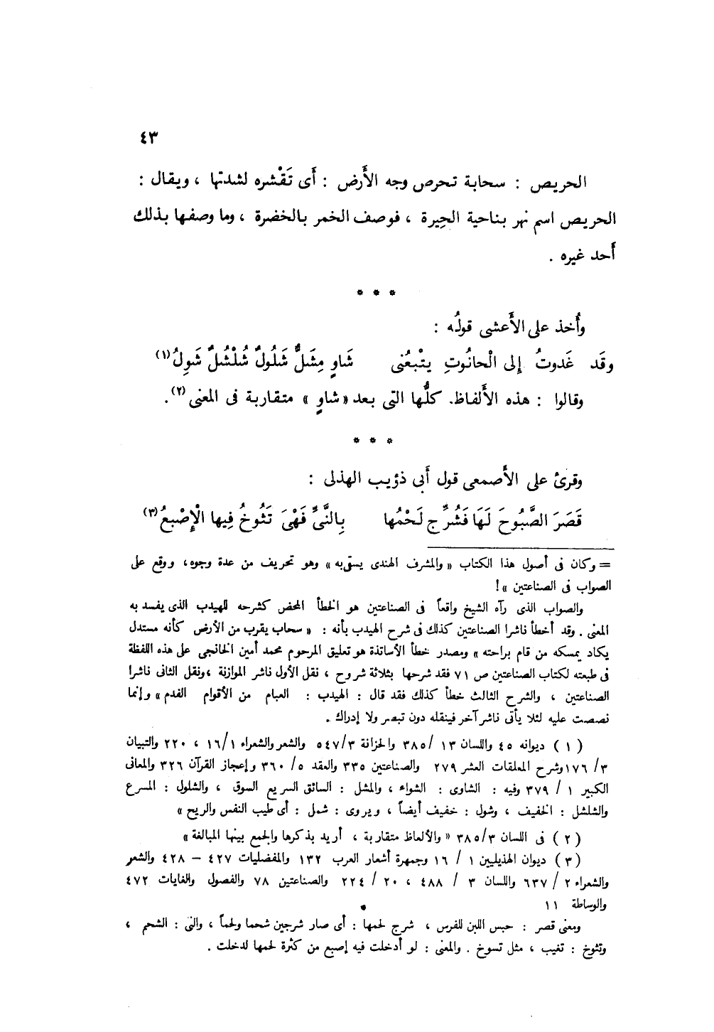 وقرئ على الأصمعي قول أبي ذؤيب الهذلي: