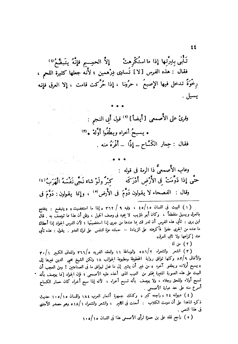 فقال: هذه الفرس تساوى درهمين؛ لأنه جعلها كثيرة اللحم، رخوة، يدخل فيها الإصبع، حرونا، إذا حركت قامت، إلا العرق فإنه يسيل.
