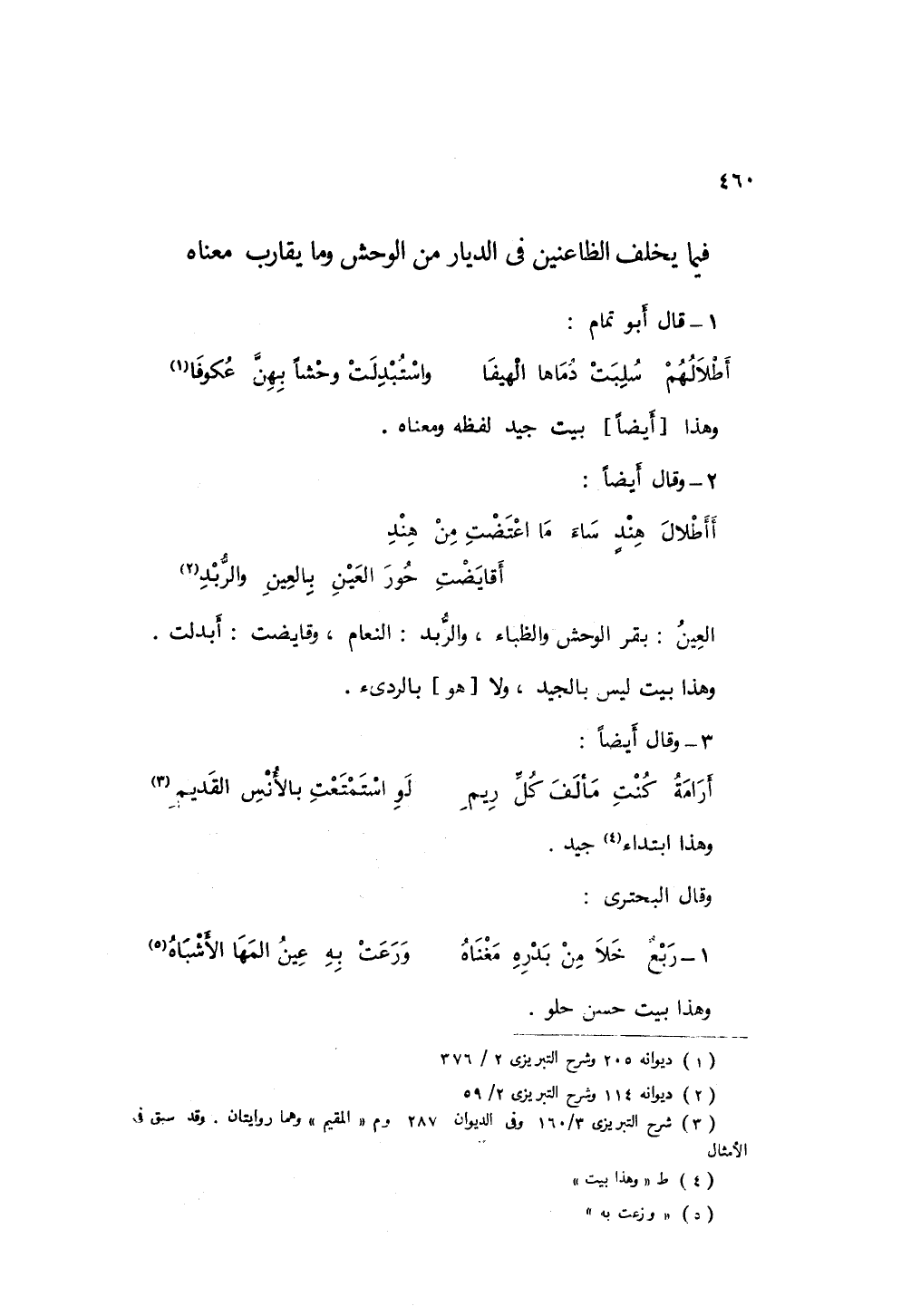 العين: بقر الوحش والظباء، والربد: النعام، وقايضت: أبدلت، وهذا البيت ليس بالجيد ولا بالردئ.