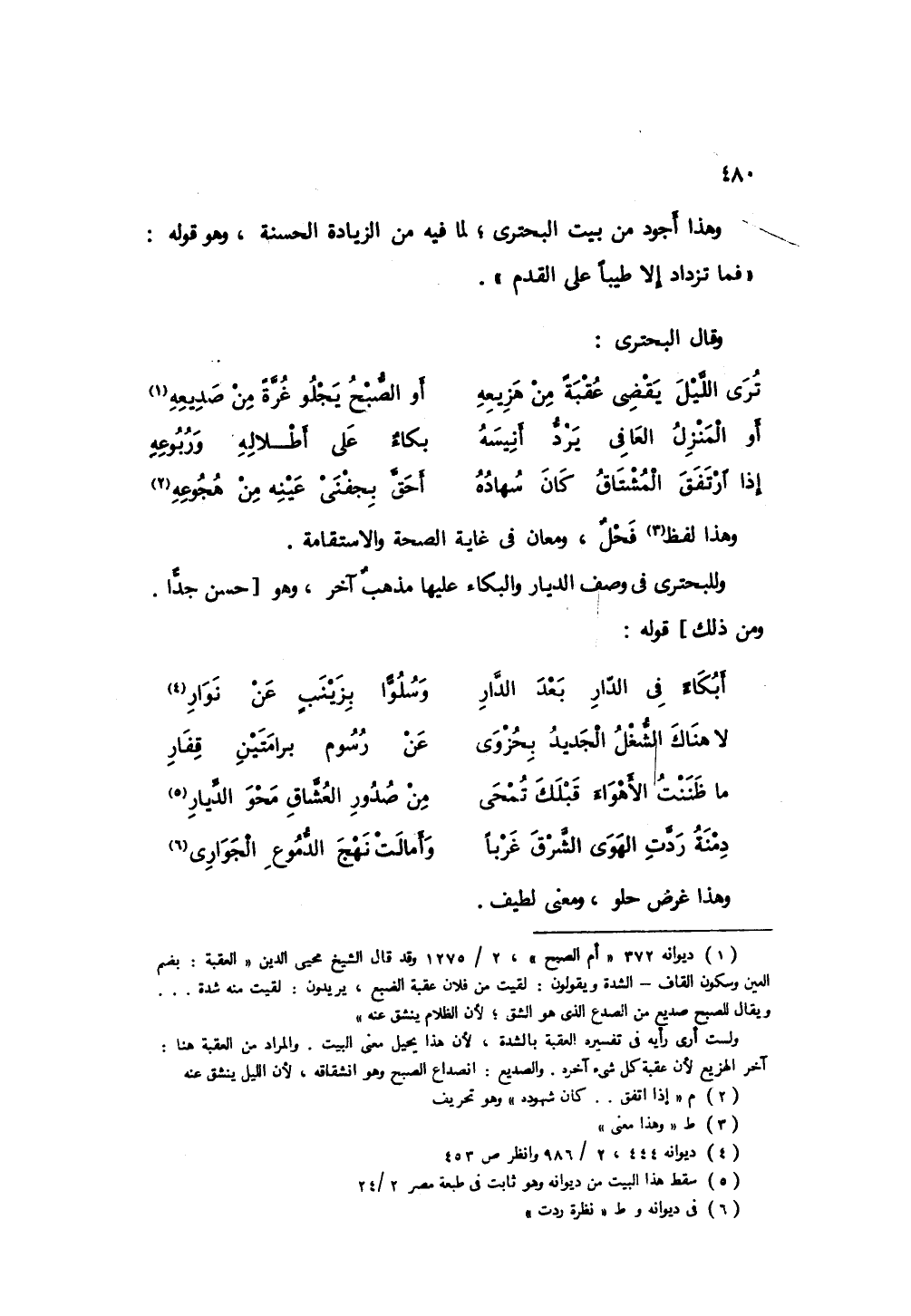 وللبحتري في وصف الديار والبكاء عليها مذهب آخر، وهو حسنٌ جداً، ومن ذلك قوله: